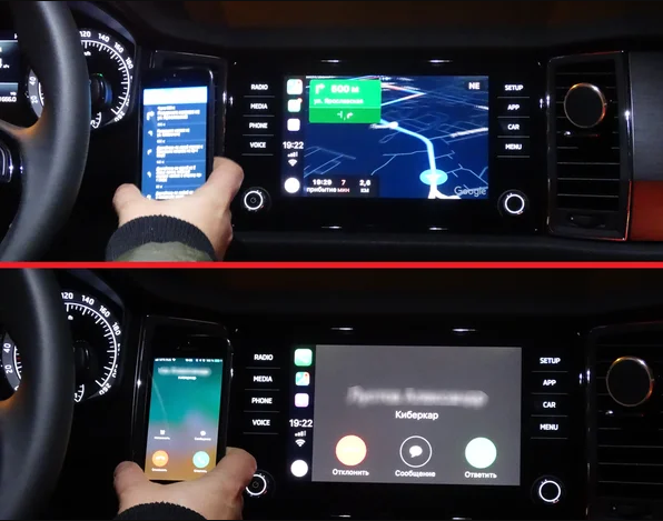 В CarPlay есть очень навязчивая проблема в виде отсутствия многозадачности во время движения и использования навигации одновременно. Система требует подключенного телефона, и Apple посчитала важным реализовать функцию принятия вызова. Только реализована она весьма криво. Представьте ситуацию, когда вы находитесь на незнакомом участке дороги и используете навигацию, как вдруг раздается звонок и вся навигация перекрывается картинкой вызова. Роковая оплошность Apple в данном случае может стоить нервных клеток водителя, ведь тот проезжает нужный поворот и теряет кучу времени.