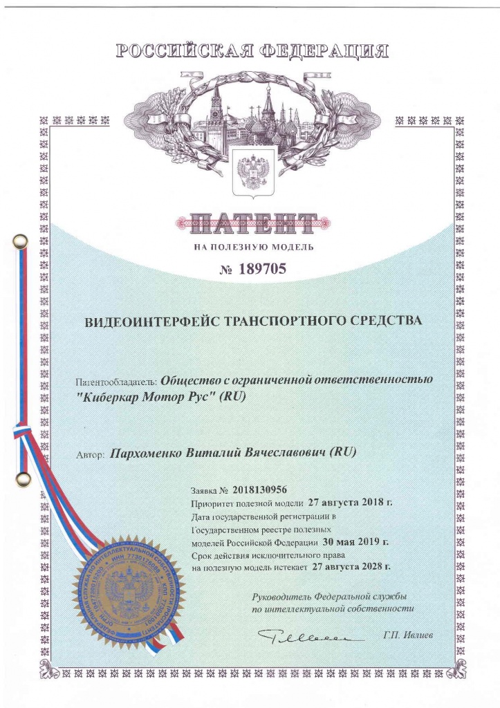 С радостью спешим проинформировать Вас, что наша компания получила патент на устройство «Видеоинтерфейс транспортного средства».