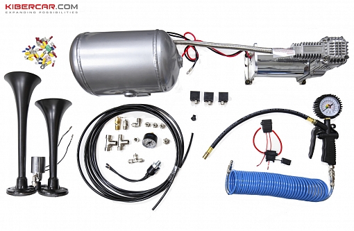 Специально разработанная компрессорная система GOODWIN которая позволяет реализовать такие опции в автомобиле, как «пневматический сигнал» и «стационарная подкачка колес». Мощная 152 dB и компактная система способна обеспечить необходимое давление воздуха для достижения максимального звукового эффекта, звук от сигнала можно услышать более чем за 1500 метров. Узел подкачки колес и специальный шланг с пистолетом, входит в комплект системы.