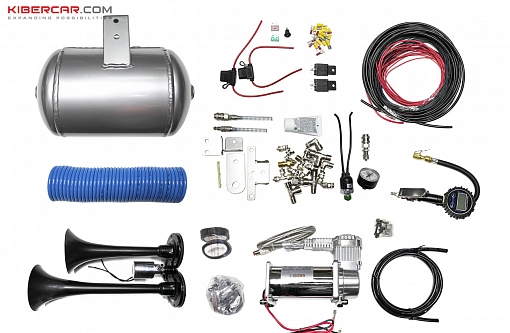 Специально разработанная компрессорная система GOODWIN которая позволяет реализовать такие опции в автомобиле, как «пневматический сигнал» и «стационарная подкачка колес». Мощная 152 dB и компактная система способна обеспечить необходимое давление воздуха для достижения максимального звукового эффекта, звук от сигнала можно услышать более чем за 1500 метров. Узел подкачки колес и специальный шланг с пистолетом, входит в комплект системы.