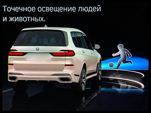 Система ночного видения базируется технически на излучения в дальней ИК-области. При этом распознается тепловое излучение от объектов. С помощью системы ночного видения на приборной панели/ центральном дисплее/проекционном дисплее автоматически распознаются люди и животные. После анализа расстояния и направления движения водитель с помощью символа получает предостережение об опасности со стороны людей или животных. Символ предостережения показывается на комбинации приборов и при необходимости на виртуальном дисплее. По соображениям безопасности при скорости примерно от 5 км/ч и слабом наружном освещении изображение появляется только при включенном ближнем свете. В зависимости от комплектации автомобиля для лучшего распознавания определяемые . объекты освещаются целенаправленным светом (динамическое световое пятно).
