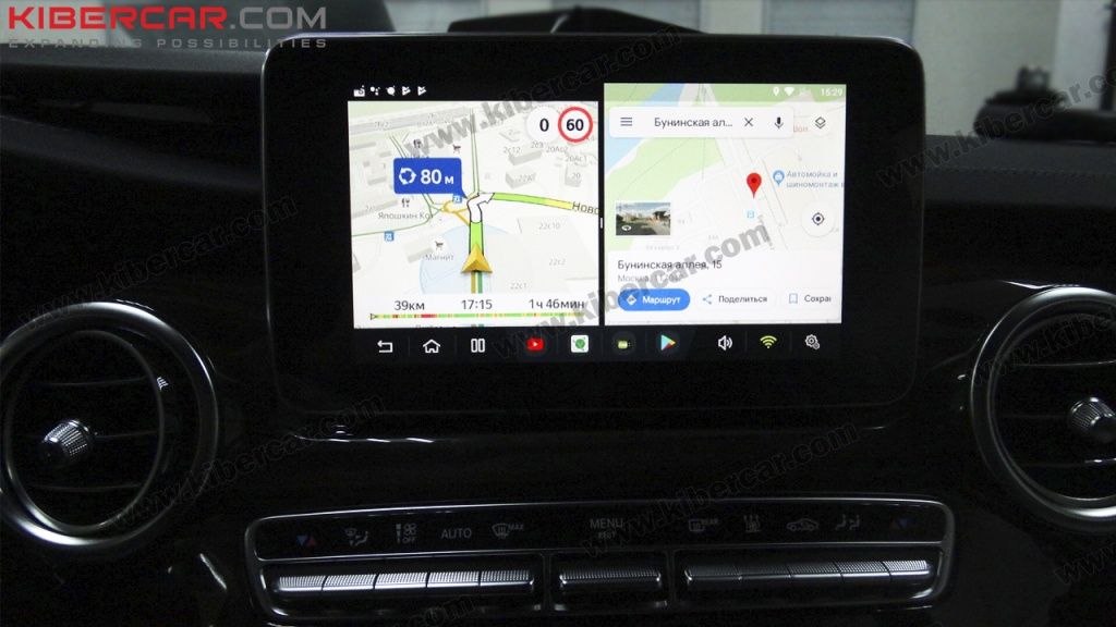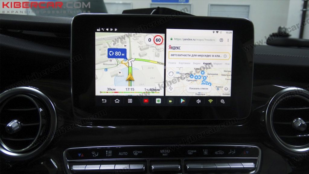 Оригинальная система Mercedes никуда не делась, мы лишь внедрили наш навигационный блок и связали их работу так, чтобы одно не мешало другому. Переключиться на систему Android можно в любое время, нажав штатную кнопку Navi.