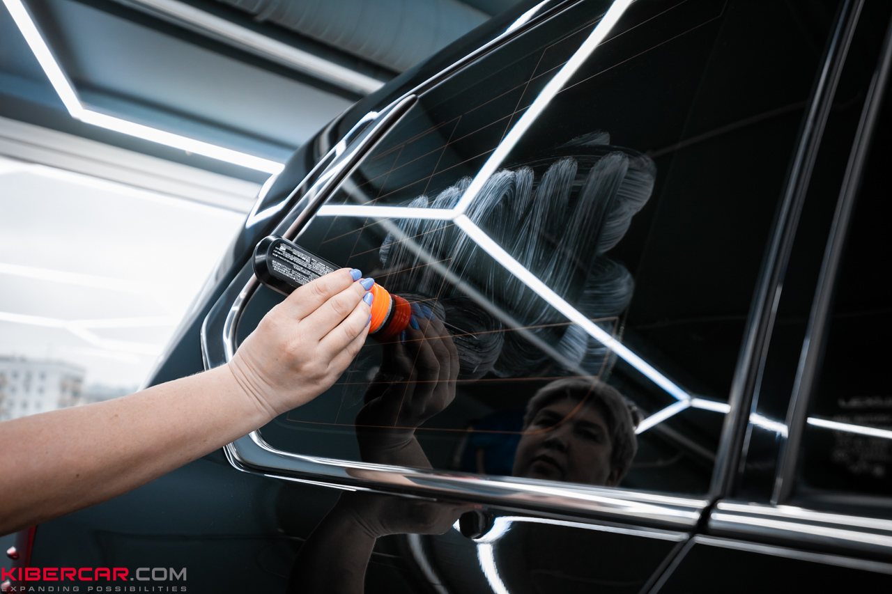 Перед нанесением антидождя мы провели тщательную подготовку всех стеклянных поверхностей. Этот процесс включает в себя: