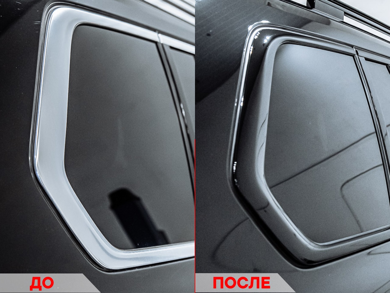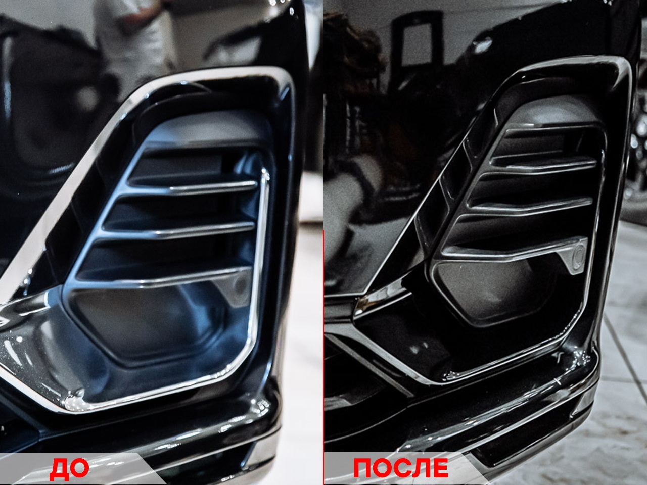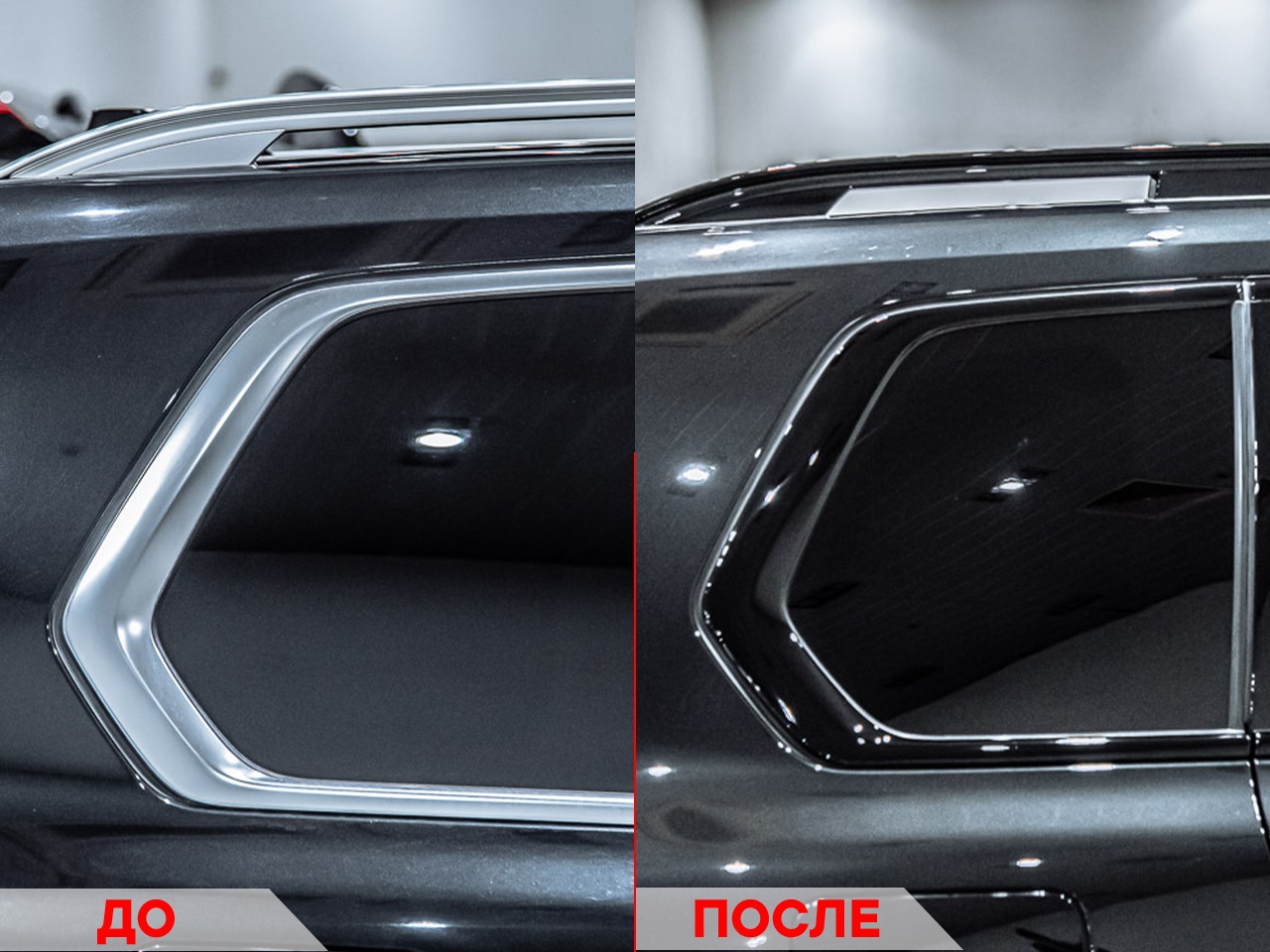 Для того чтобы убрать блеск, мы проводим либо специальную обработку без механического воздействия, которая включает демонтаж и очистку хромированных элементов с последующей покраской в черный цвет, либо нанесение черной матовой или глянцевой пленки. Работы никак не затрагивают другие автомобильные комплектующие.