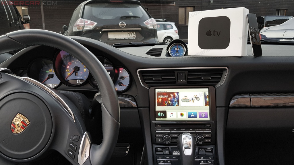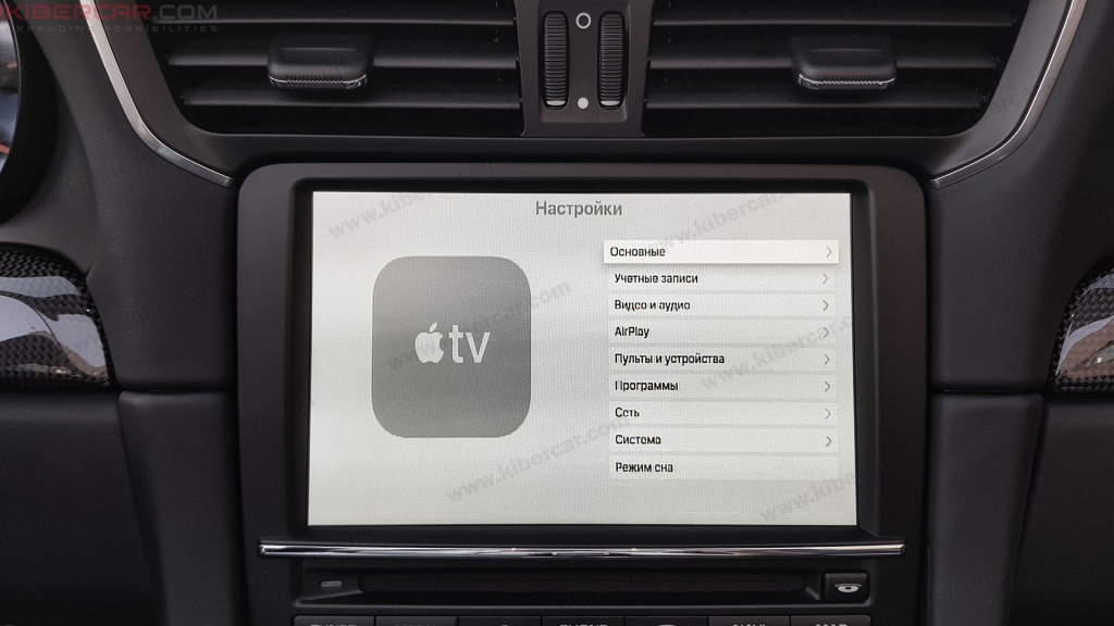 Скорость скоростью, а остановиться и передохнуть иногда очень нужно. Как раз для этого мы припасли владельцу комплект Apple TV, который мы в конечном итоге внедрили в штатный экран. По классике, все штатное – осталось штатным и даже OEM-меню, не отличающееся продвинутостью.