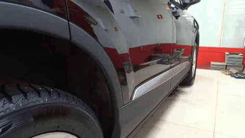 Открытие двери служит триггером для срабатывания. Пороги выезжают как только они открыты и скрываются под обвеской через несколько секунд после закрытия последней двери.