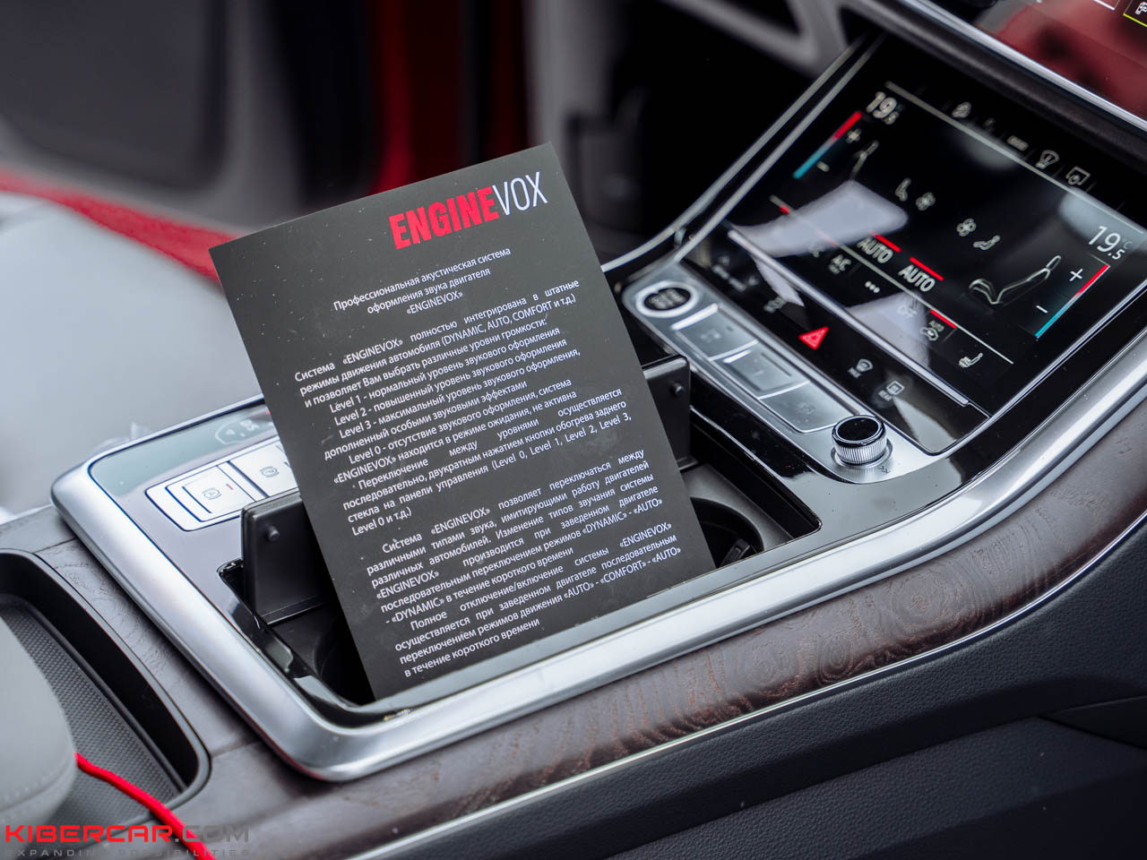 В нашем салоне для автомобиля Audi Q8 приготовили интересное дооснащение – электронный выхлоп ENGINEVOX. Благодаря этому тюнингу владелец может изменять звучание выхлопной системы автомобиля, выбирая между звуками, характерными для мощных движков Range Rover Sport, Mercedes-Benz G-класса с выхлопом Akrapovic, Lamborghini Urus. Реализовать это помогает комплект оборудования, в который входят усилитель звука, генератор и динамики.