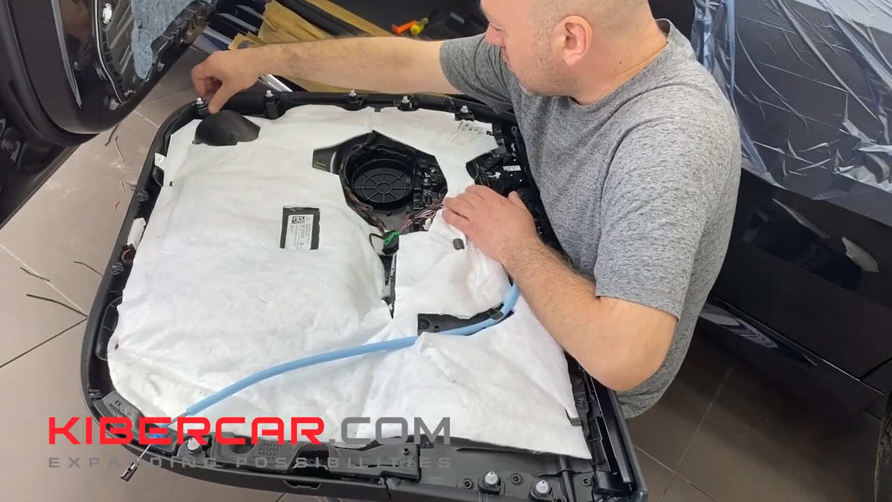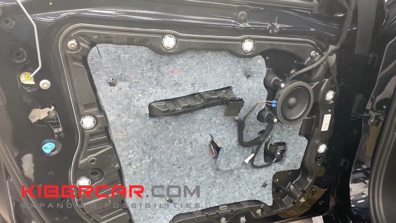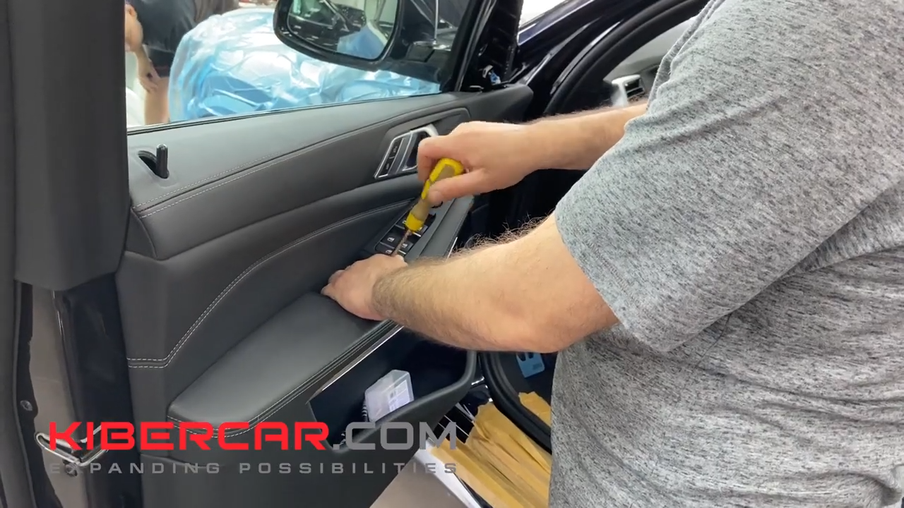 Работы начинаем со съема дверных карт для того, чтобы изъять оригинальное стекло и вернуть его владельцу BMW.