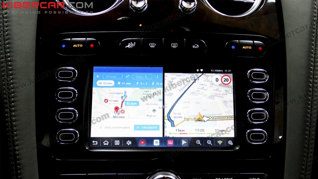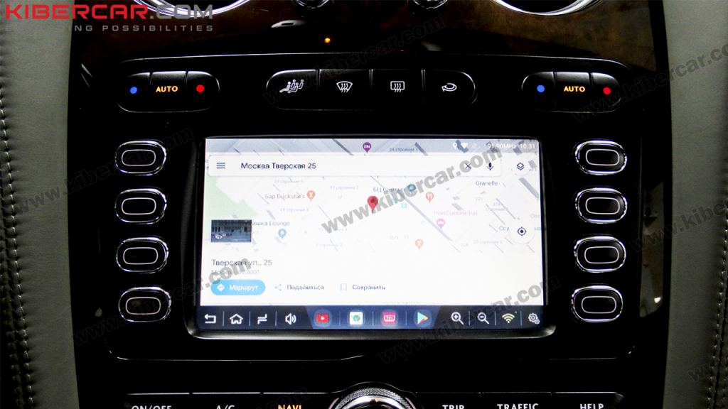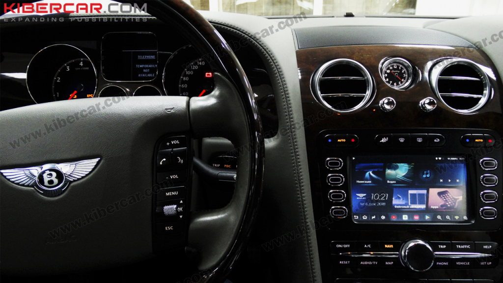 Благодаря Киберкар владелец данного Bentley Continental GT может называть свой автомобиль полноценной мультимедийной системой. И это без привязки к мобильному телефону, который не требуется использовать параллельно вождению. Комфортно пользоваться системой можно и в дороге, но обращайте внимание и на саму дорогу!