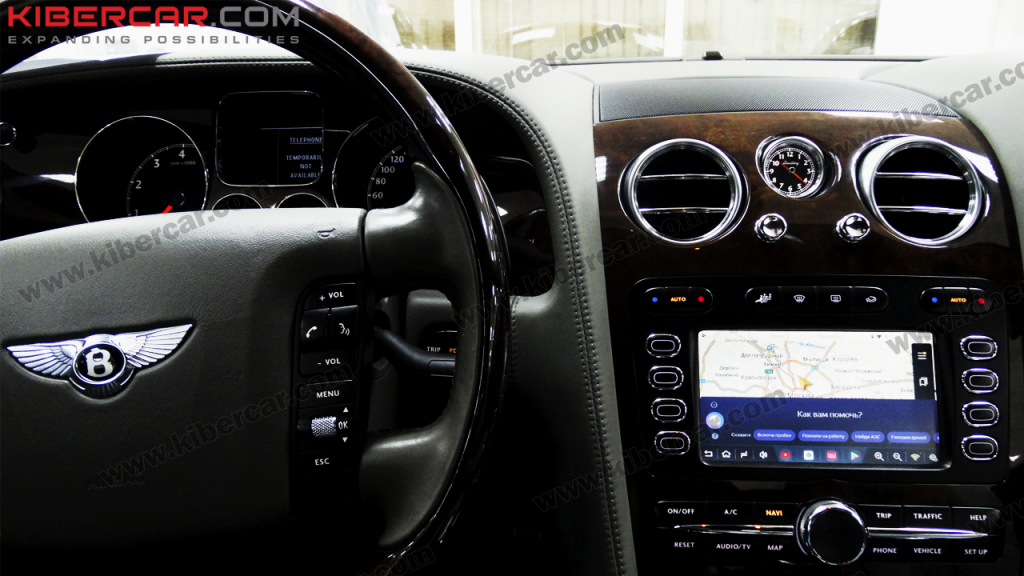 Это стало возможным благодаря специально подобранному видеоинтерфейсу, который позволил подключить к ГУ Bentley внешний видеоисточник в виде нашего навигационного блочка.