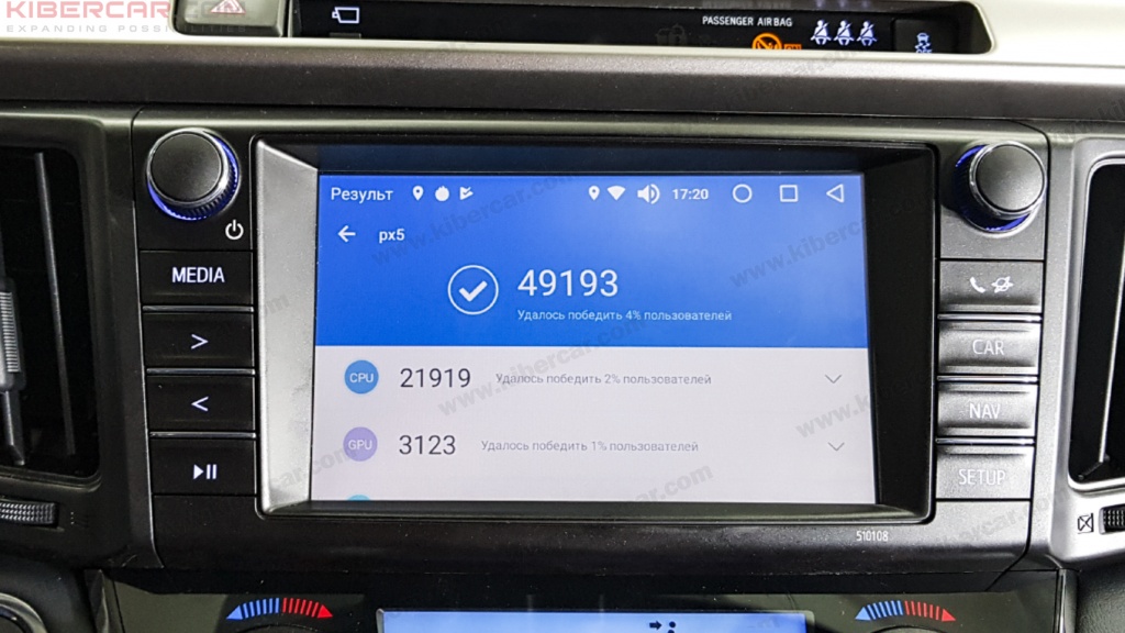 Наиболее производительный блок Android. По результатам тестов в AnTuTu набрал 120145 баллов, что в 2,4 раза быстрее Radiola и в 10 раз быстрее Navitouch. Шестиядерного ядра с максимальной тактовой частотой 1992 Mhz оказалось достаточно для устройства;