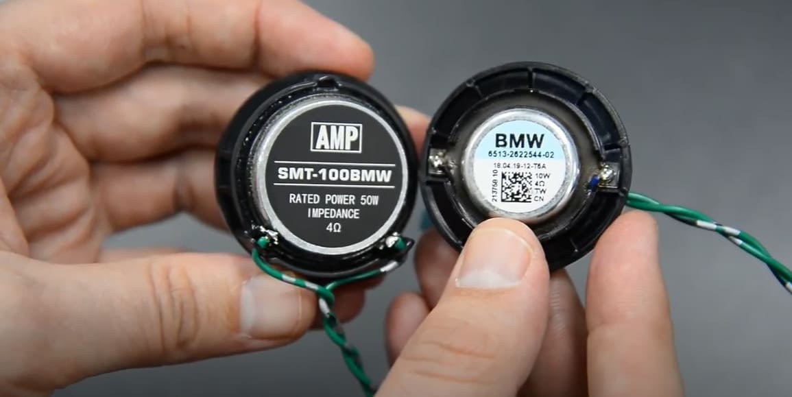 Решение: комплексная замена всей штатной акустики на продукцию компании AMP, специализирующейся на поставках комплектов для BMW.