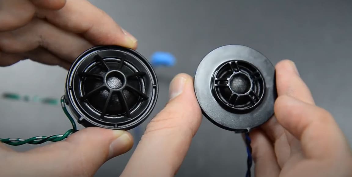 Работа начинается с демонтажа и замены твиттеров (пищалок) на новые, мощностью 50W. После этого мы снимаем дверные карты и устанавливаем на место новые среднечастотные динамики АМР.
