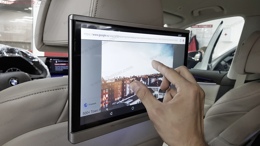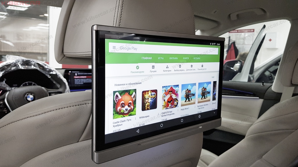 Сами мониторы работают автономно. В них предустановлен Android и Play Маркет, что в свою очередь даст возможность скачать любое приложение и наслаждаться им в дороге. А телефон или планшет пусть останутся для более важных дел. Да и смотреть на это куда приятней, чем держать голову в неудобном положении при использовании планшета – здесь ты будто имеешь удовольствие смотреть свой персональный кинотеатр.