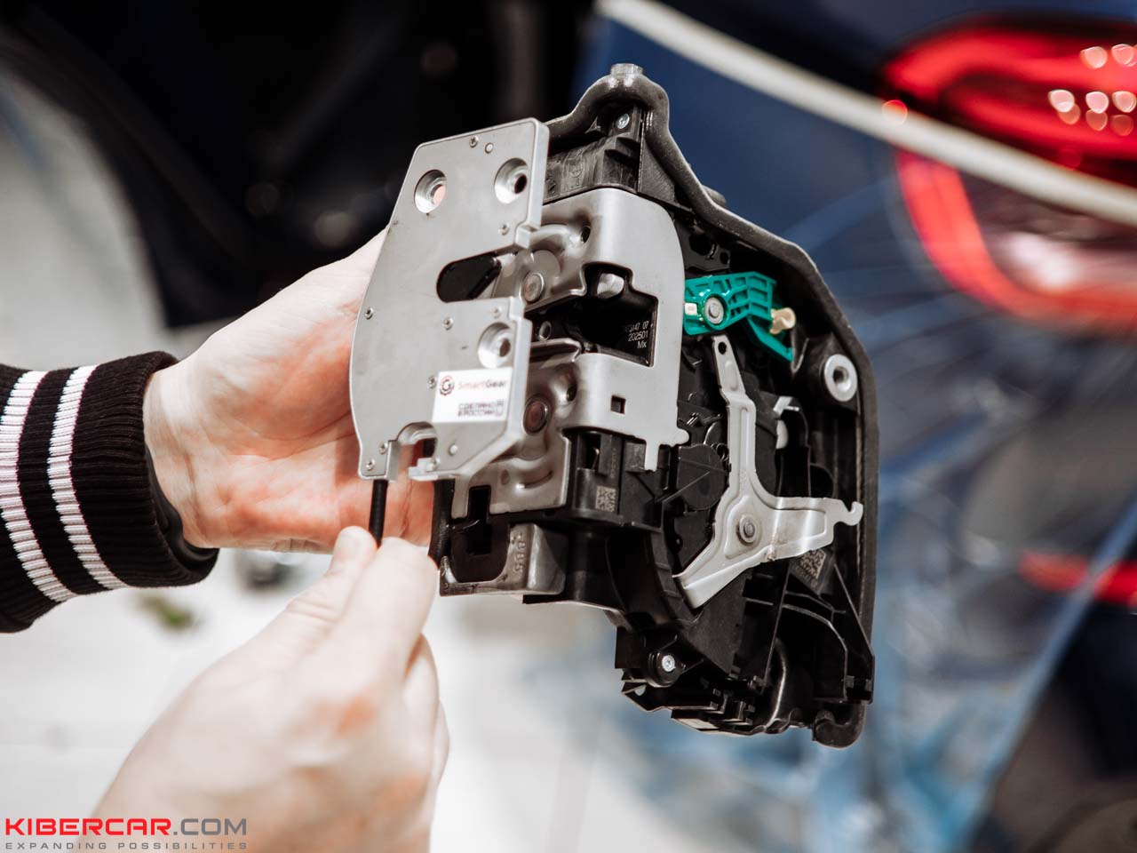 Комплект доводчиков включает пластину для штатного замка, а также электрический мотор с тросовой системой. Установку наши специалисты выполняют, используя технологию Pin-to-Pin. Это значит, что в конструкцию не вносятся серьезные изменения, поэтому и гарантия от официального дилерского салона остается.