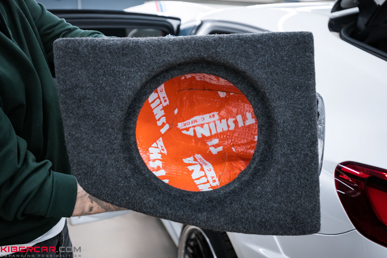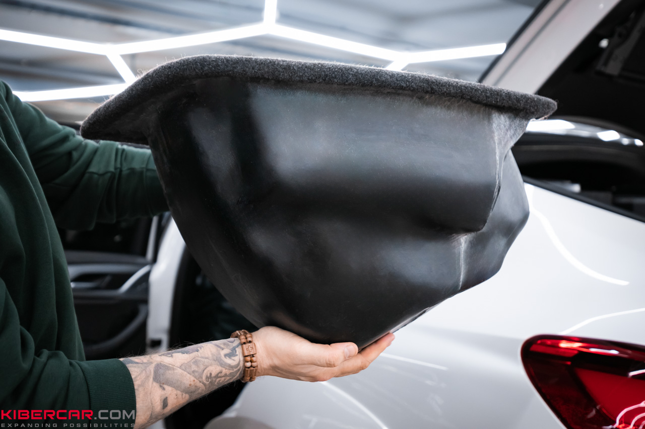 Владелец BMW X4 обратился к нам для изготовления корпуса и установки стелс сабвуфера. Мы изготовили корпус из полиэфирной смолы с повышенной толщиной стенок, это позволяет корпусу выдержать высокое давление воздуха создаваемое динамиком. Дополнительно оклеили его изнутри виброизоляцией.