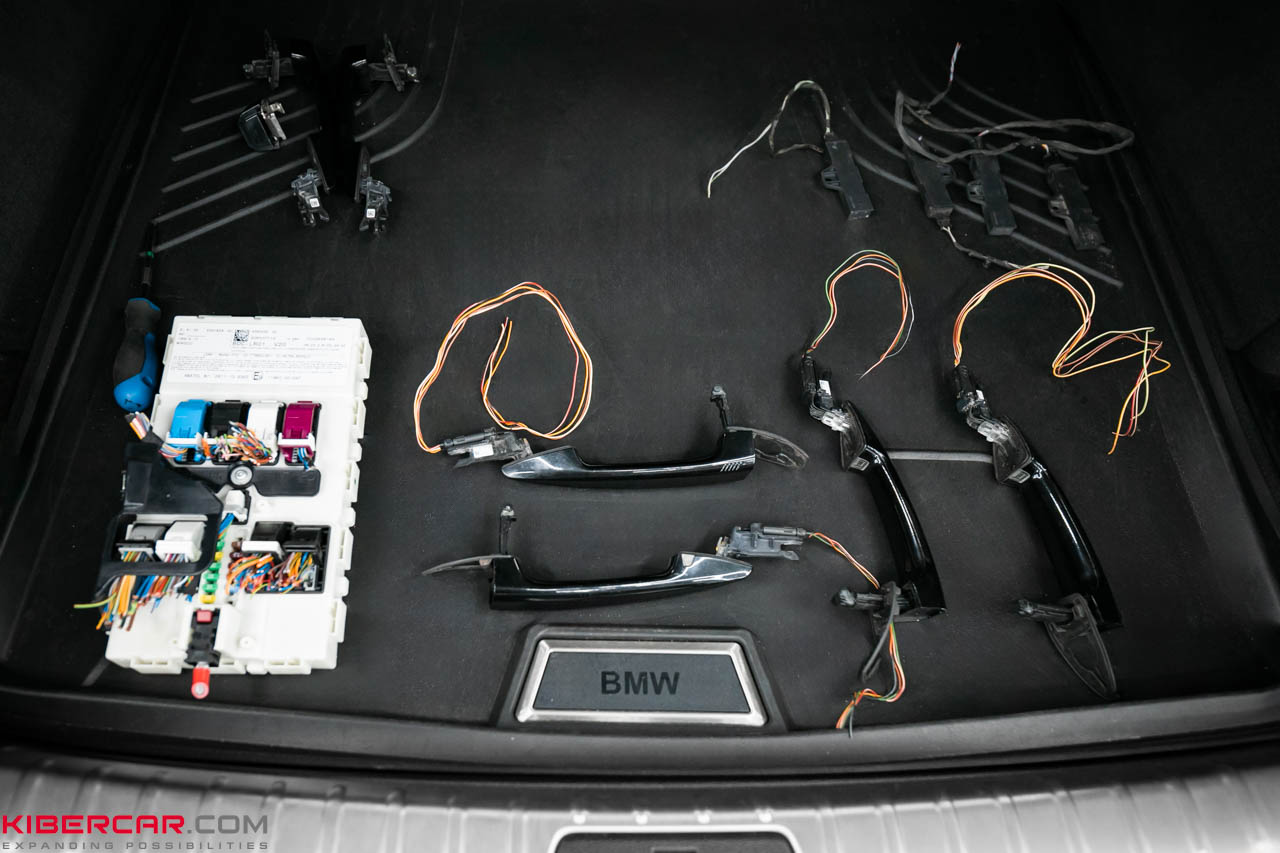 Для проведения дооснащения мы аккуратно разобрали двери и демонтировали штатные ручки. Работали максимально аккуратно, чтобы не повредить обшивку. Затем установили новые ручки, блок управления и датчики – в пороги, внутрь бампера и багажника. После этого команда установочного центра выполнила перепрошивку, чтобы обеспечить беспроблемное функционирование.