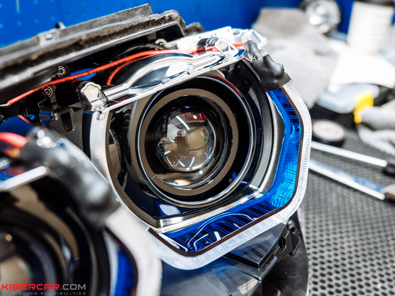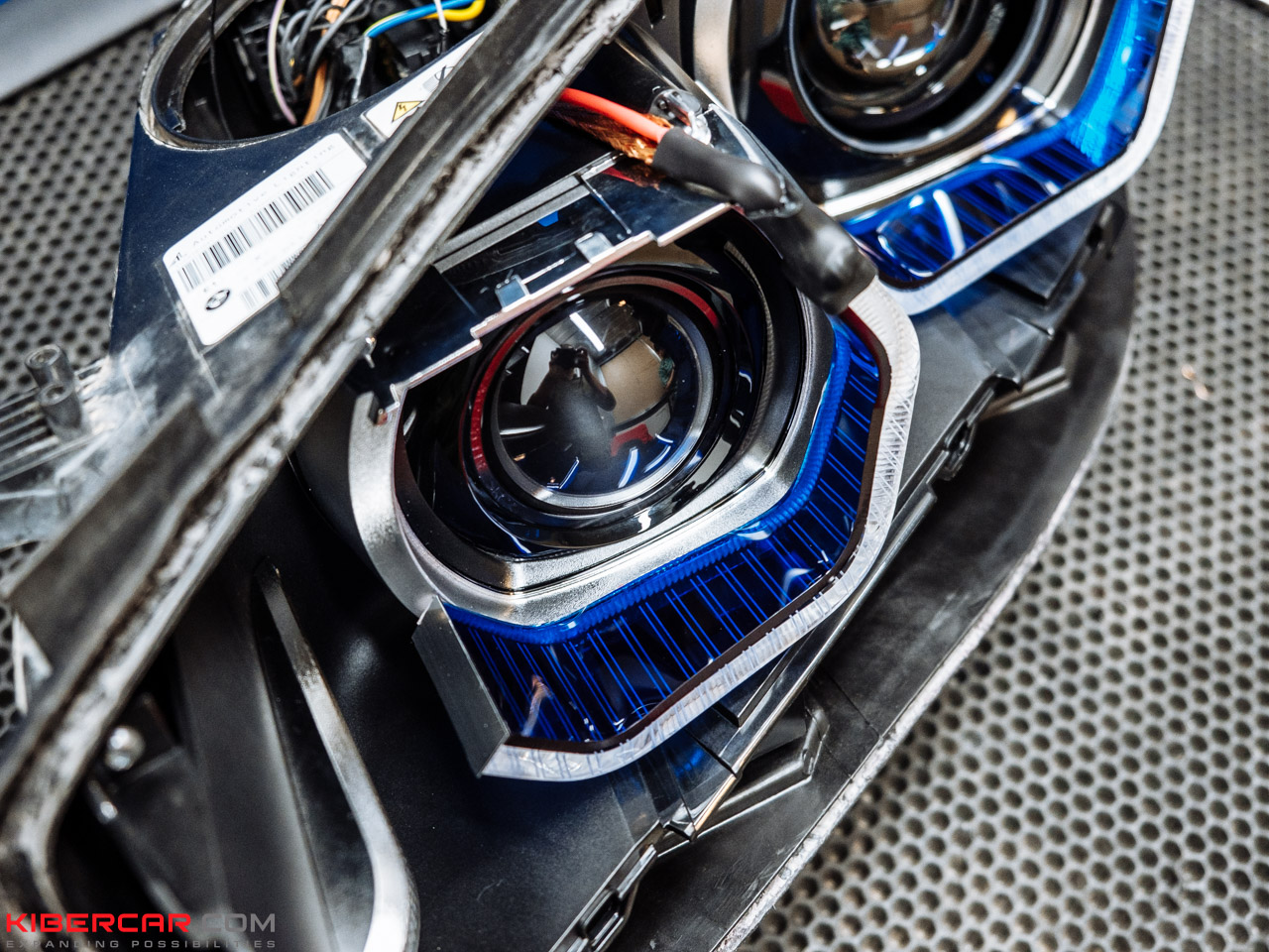 Кроме установки светодиодных модулей, наша команда придала оптике автомобиля более эффектный вид, поставив 3D «Ангельские глазки», как у G-серии. Помимо этого, была проведена настройка интенсивности светового излучения: в темное время суток или в условиях плохой видимости фары автомобиля будут работать в оптимальном режиме.