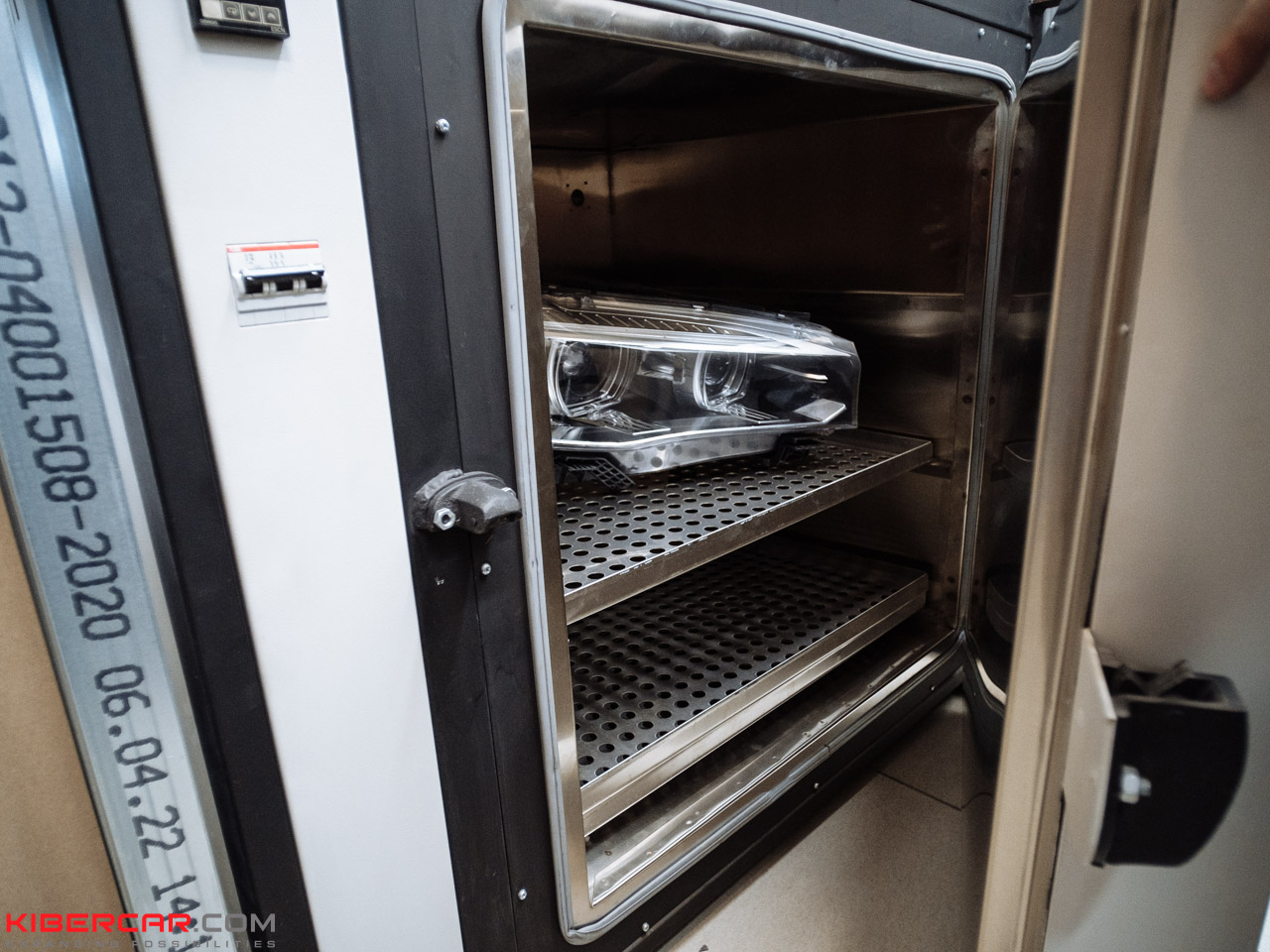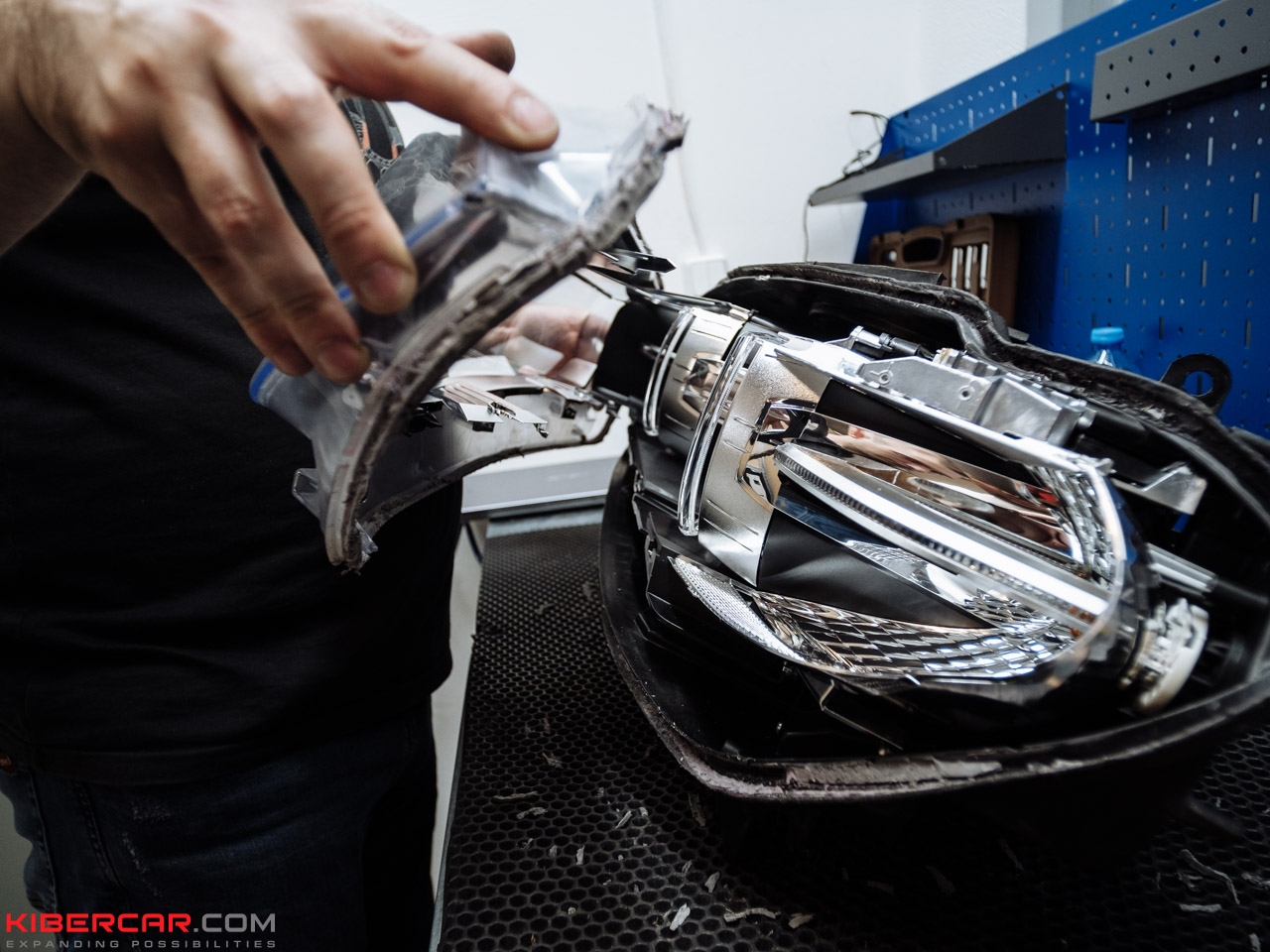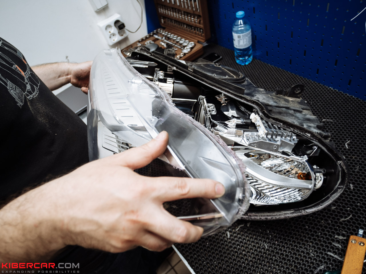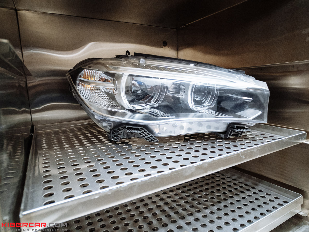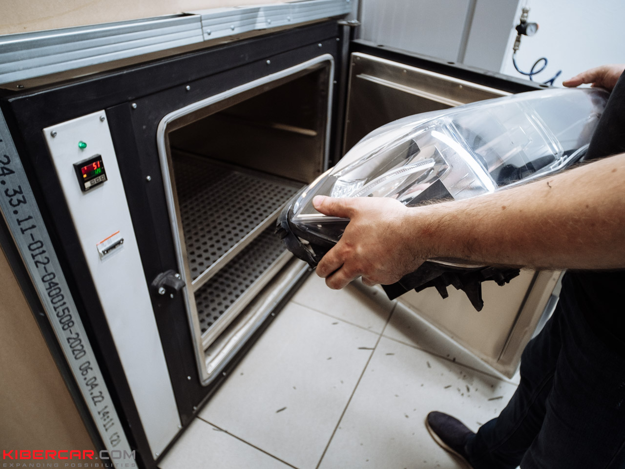 Демонтировать выгоревшие отражатели помогает спецоборудование. Фары прогреваются в печи, а также выполняется инъекция, чтобы элементы рассоединялись без малейших повреждений. После установки нового модуля мастера убирают остатки прежнего герметика. Герметизируется фара заново с помощью экструдера, что в дальнейшем предотвращает запотевание.