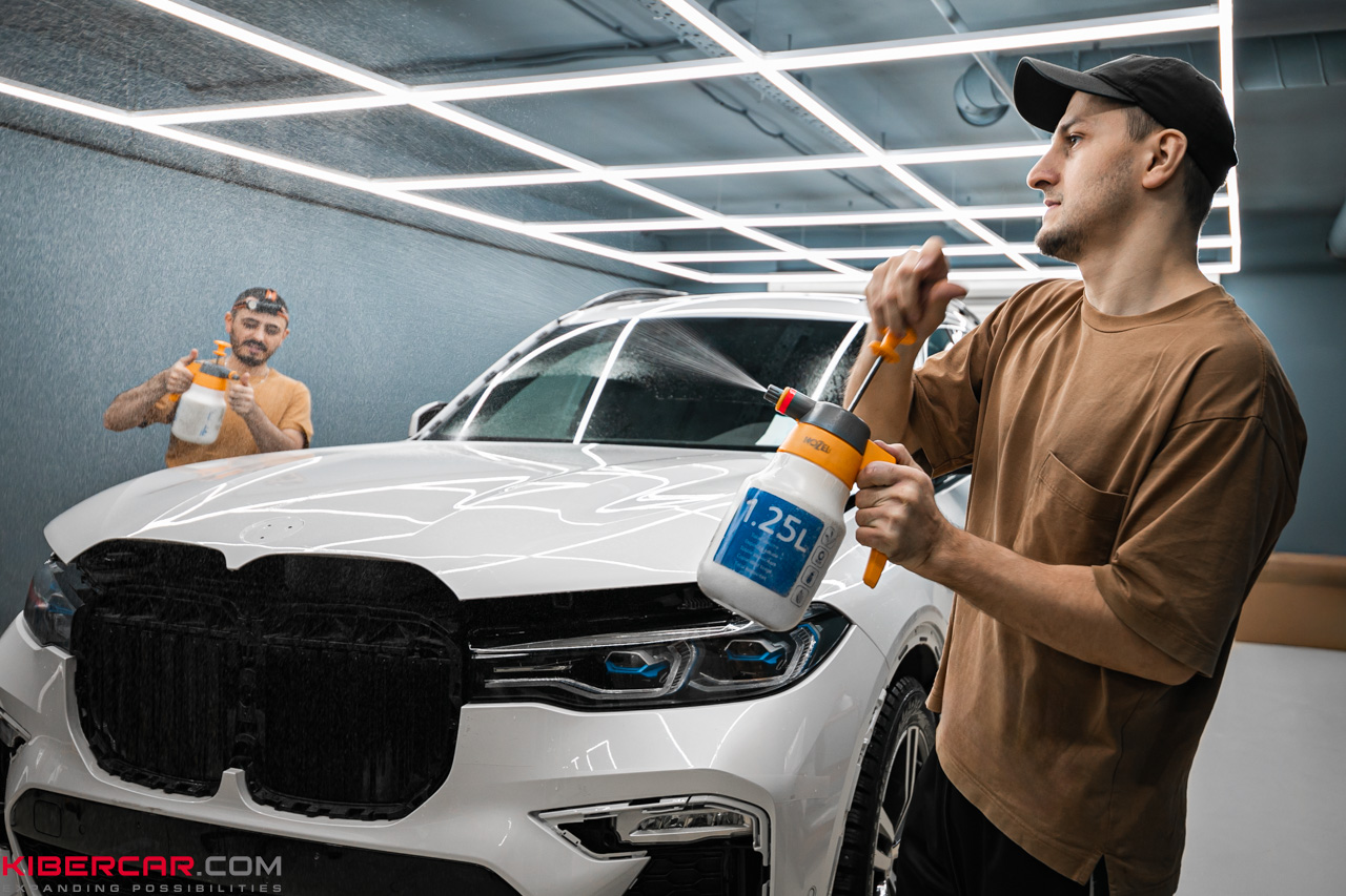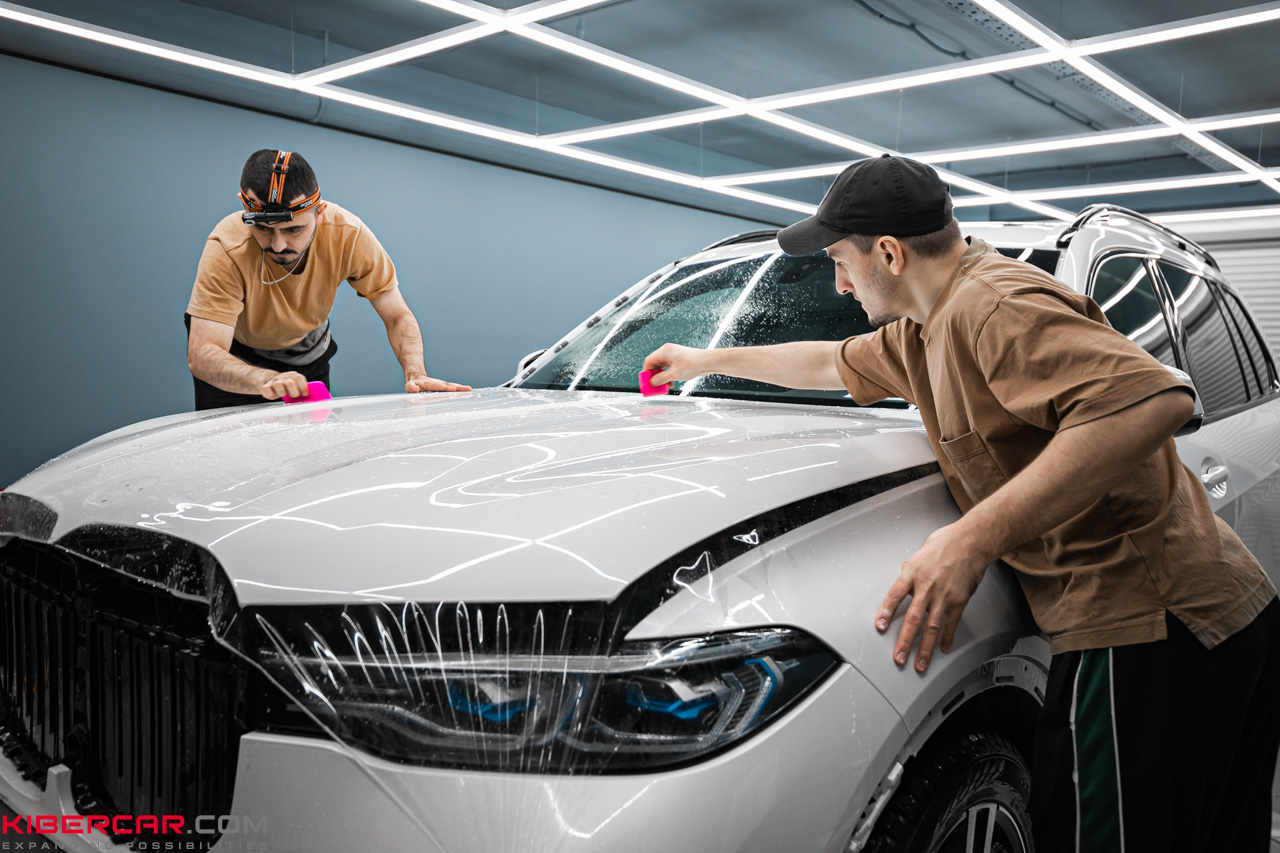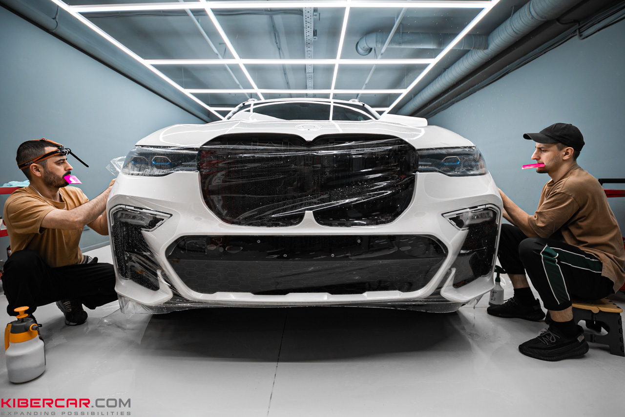 Решение: оклейка BMW X7 антигравийной глянцевой пленкой.