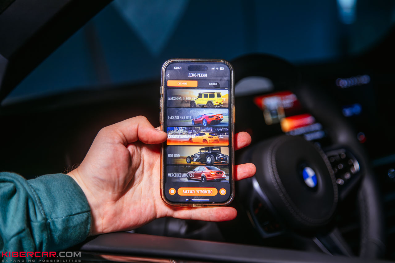 Для удобства меню приложения выполнено в виде картинок с изображениями популярных автомобилей. Достаточно нажать на экран – и BMW X5 начинает звучать как ультрасовременный спорткар. Звук невозможно передать словами, поэтому рекомендуем посмотреть видео!