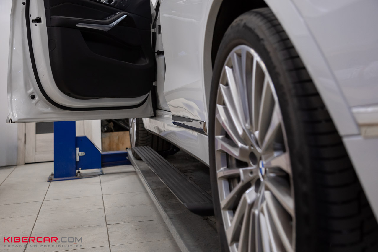 BMW X7 Рестайлинг – просторный и комфортный автомобиль. Его габариты могут служить не только преимуществом, но и недостатком: заходить в салон обычно непросто, особенно если речь идет о маленьких детях или пожилых людях. Но у нас есть решение – установка выдвижных порогов SmartGear. Именно такое дооснащение недавно провели наши мастера.