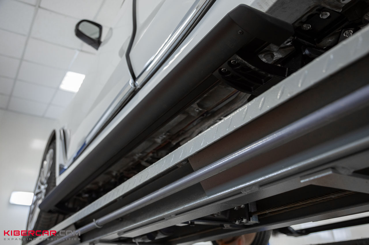 Для изготовления порогов SmartGear использует авиационный алюминий – легкий, прочный материал, устойчивый к коррозии. Конструкция способна выдержать вес до 150 кг. Подножка имеет рифленую поверхность, что особенно важно в холодное время года: она будет задерживать грязь, снег и песок, а также обеспечивать устойчивость во время посадки. Пороги не просто окрашены, а защищены антивандальным покрытием черного цвета.
