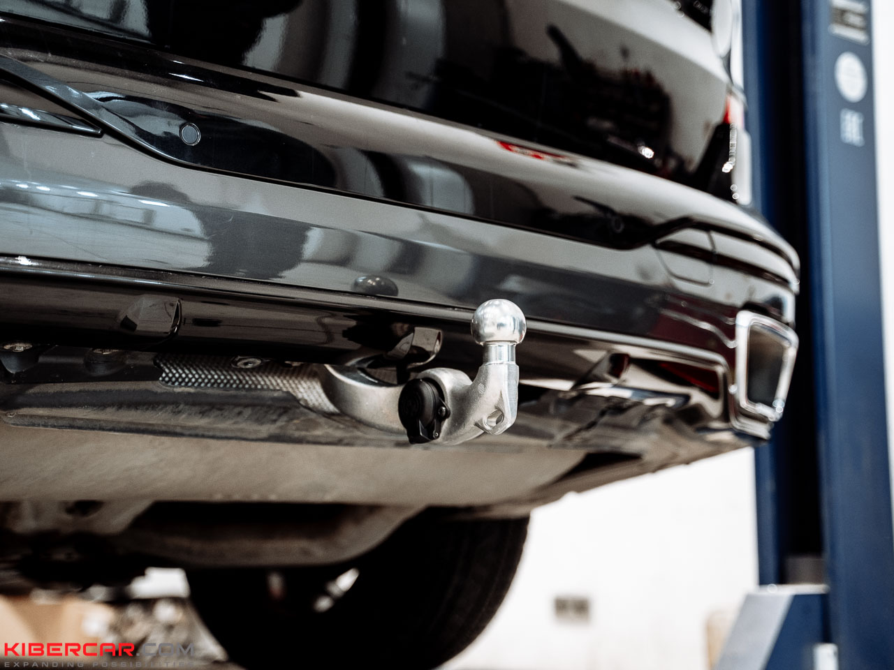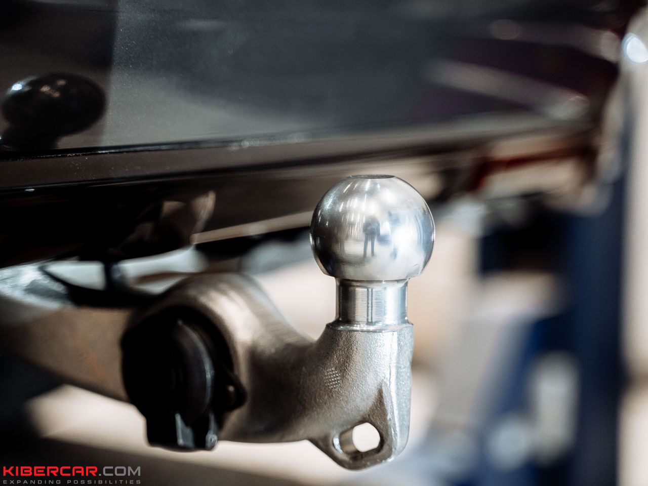 В неактивном состоянии фаркоп прячется под бампер и его практически невидно. Он выглядит как небольшой шар. Чтобы активировать его, достаточно открыть багажник и нажать на кнопку. Наши мастера установили ее на штатную позицию, поэтому она выглядит как часть интерьера и не бросается в глаза.