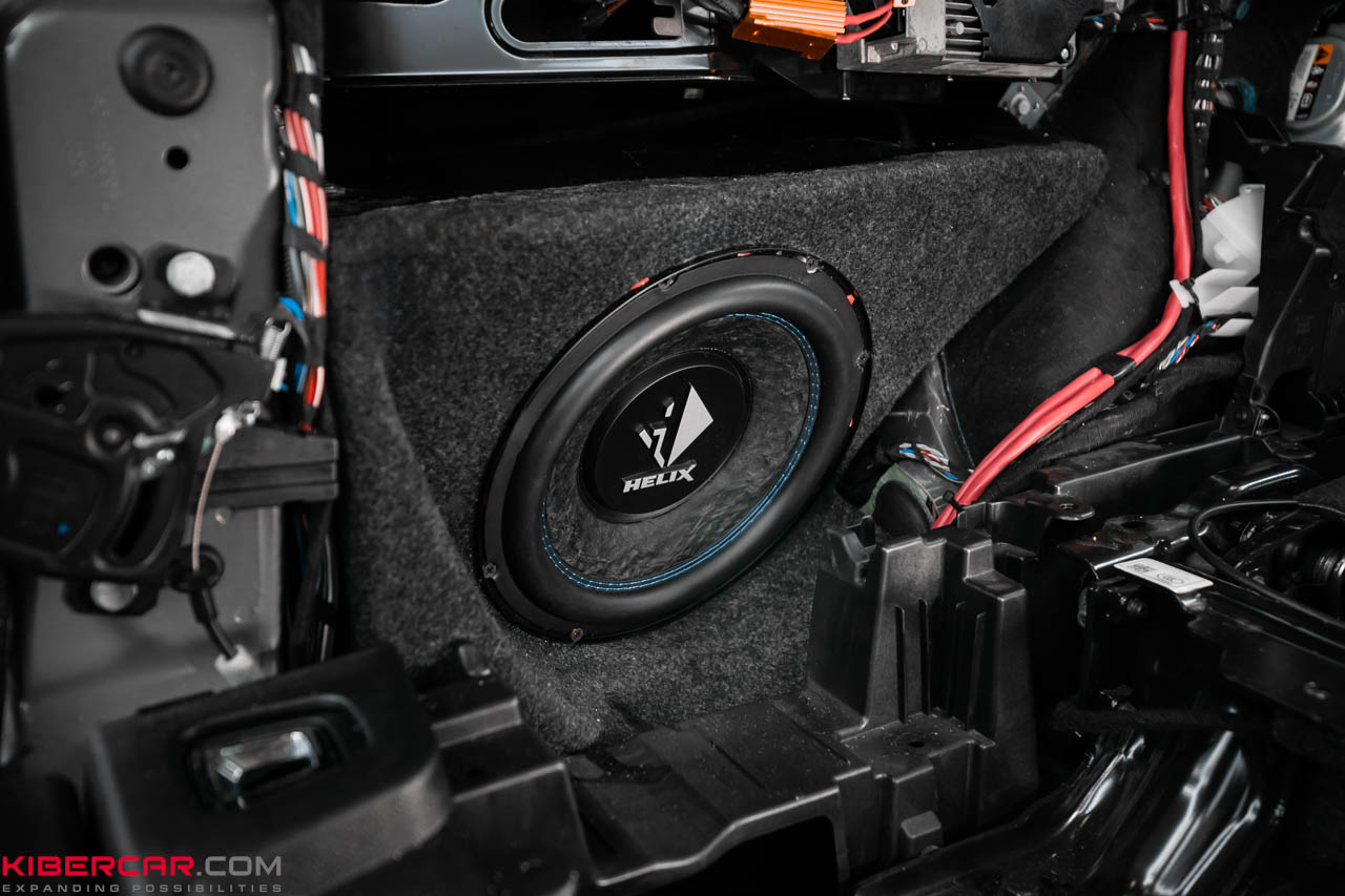 Под сиденьем установили динамики BLAM высотой 20 см, в задних дверях и на третьем ряду — компоненты BLAM серии Relax. Они создают мягкий и качественный звук, который прекрасно отыгрывает инструменты, живые выступления и вокал. BLAM хорошо воспроизводит и электронную музыку, а чтобы усилить басы, мы добавили в систему стелс-сабвуфер Helix с питанием от одноименного моноблока.