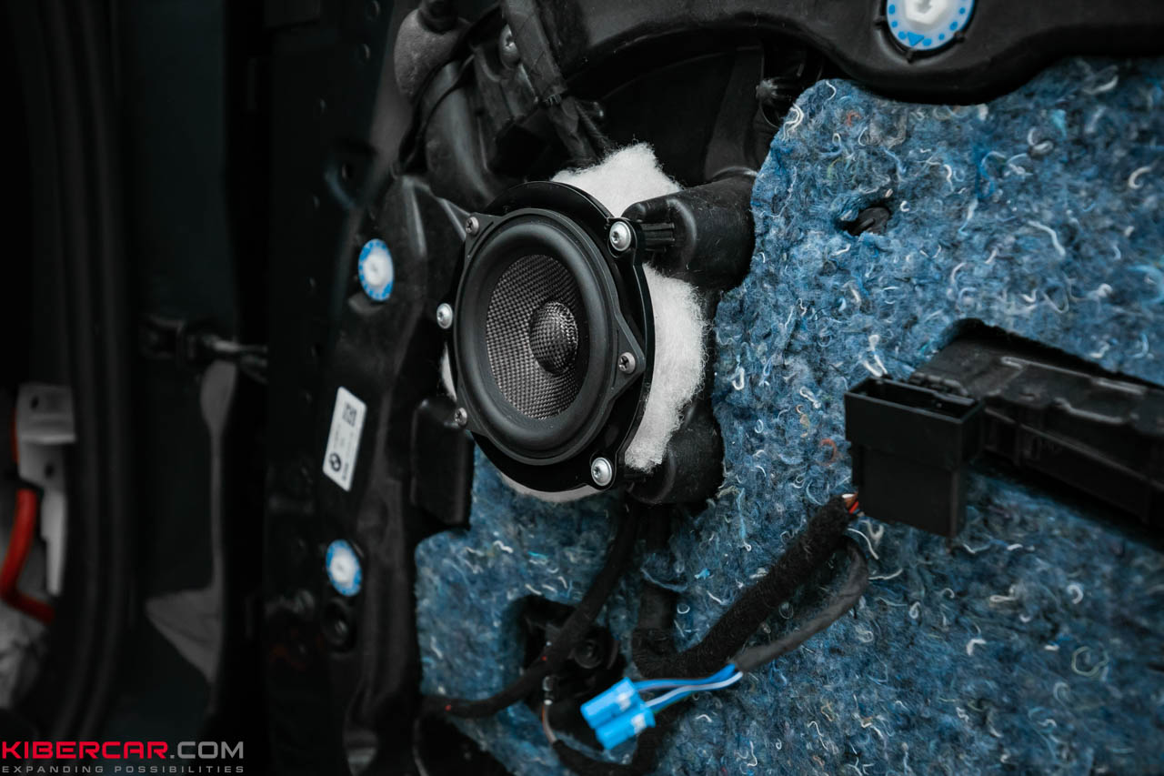 Вначале мастера выполнили демонтаж старых компонентов и установили новые, затем — настроили работу системы. Только после этого можно наслаждаться по-настоящему качественным звуком. Во фронтальной части использовали акустические компоненты BLAM серии Signature: они устанавливаются в двери и уголки за зеркалами. Это динамики с прекрасным звуковым разрешением, которые собираются вручную во Франции. Компоненты BLAM серии Signature в нашей системе будут отвечать за средние и высокие частоты.