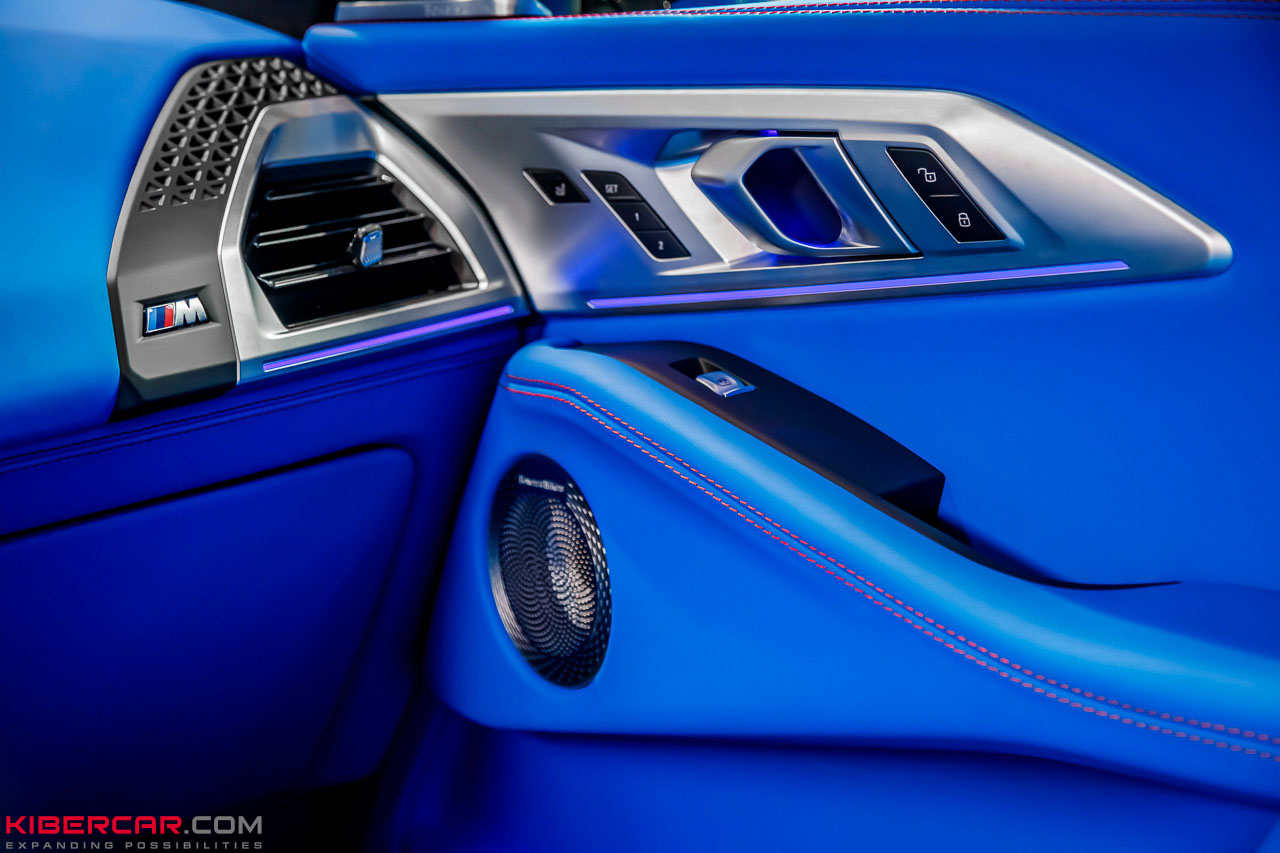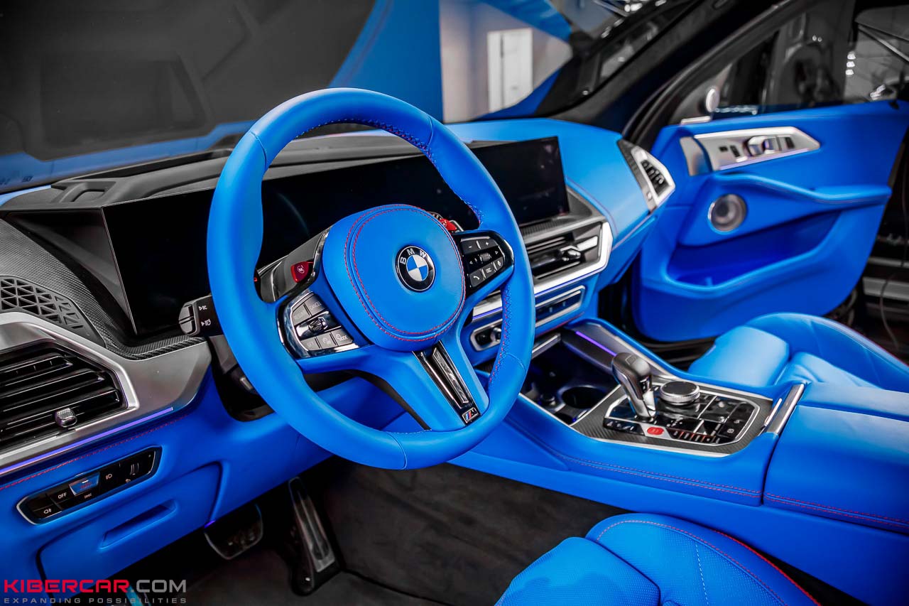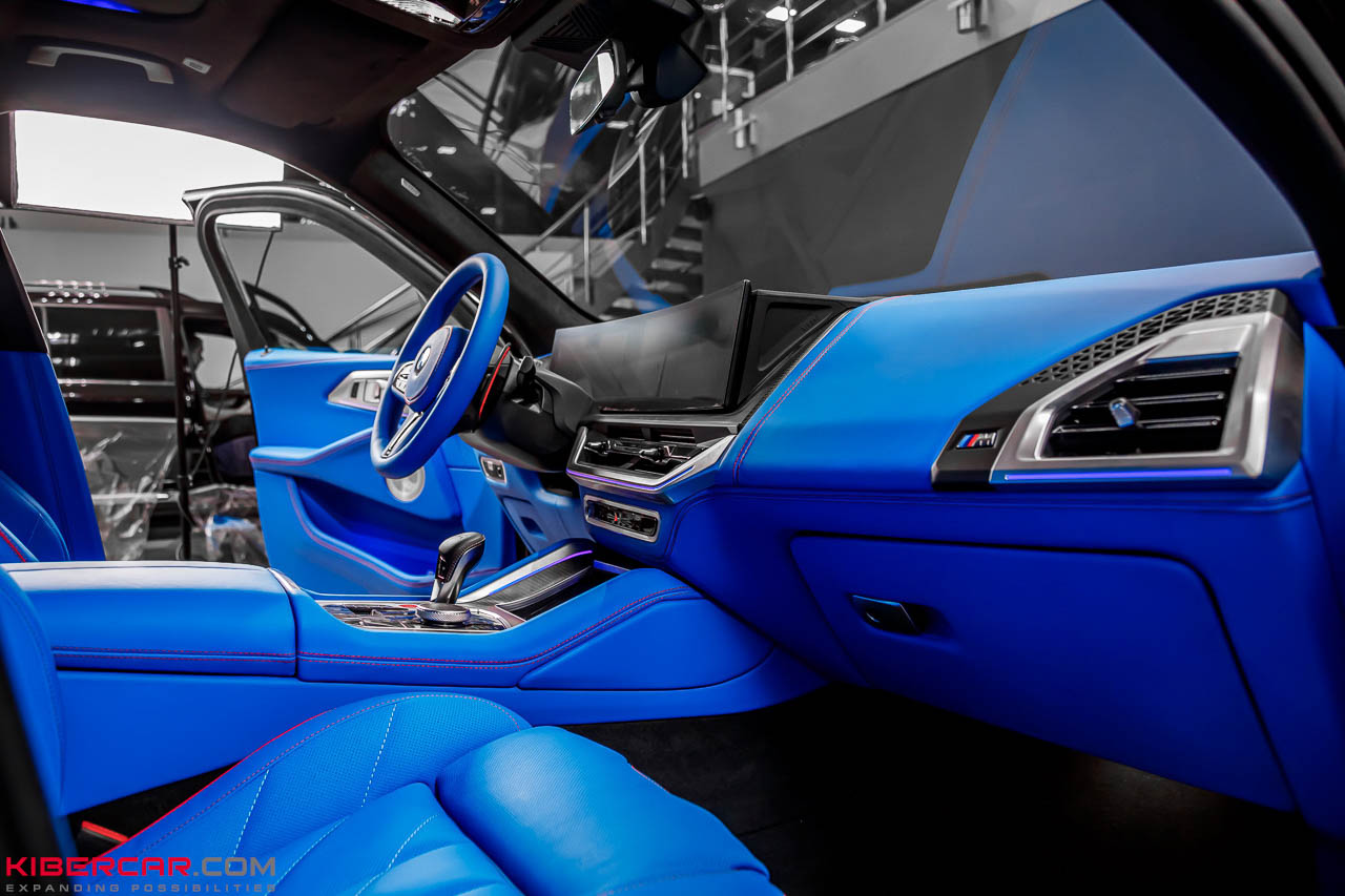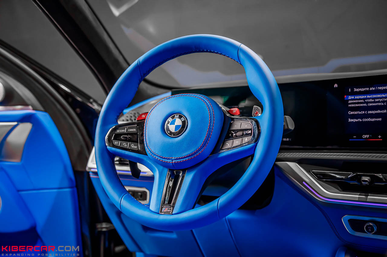 Мастера нашего установочного центра поработали над салоном BMW XM 2023 года выпуска. Штатная обшивка, выполненная в довольно скучном черном цвете, не нравилась владельцу, и мы предложили более оригинальное решение. Для перетяжки был выбран синий оттенок кожи наппа. Этот материал приятный на ощупь, шелковистый и при этом очень прочный.