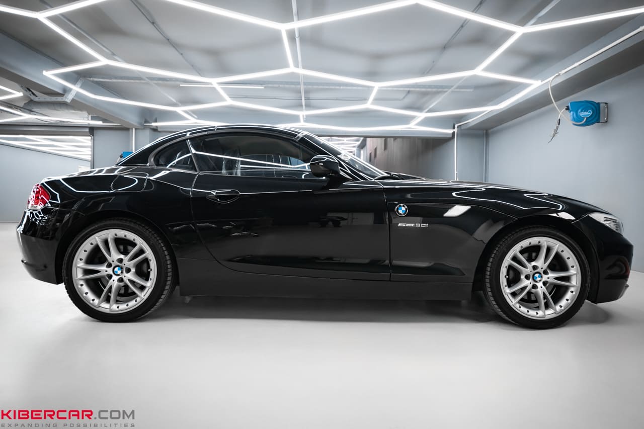 Лакокрасочное покрытие автомобиля первым страдает от воздействия негативных факторов внешней среды. Высокая влажность, пыль и мелкие камешки, осадки приводят к появлению царапин, и автомобиль выглядит не так, как в день покупки. Чтобы восстановить прежний лоск, наша команда проводит полировку кузова, не прибегая к перекрашиванию. Именно эту услугу заказал у нас владелец BMW Z4.
