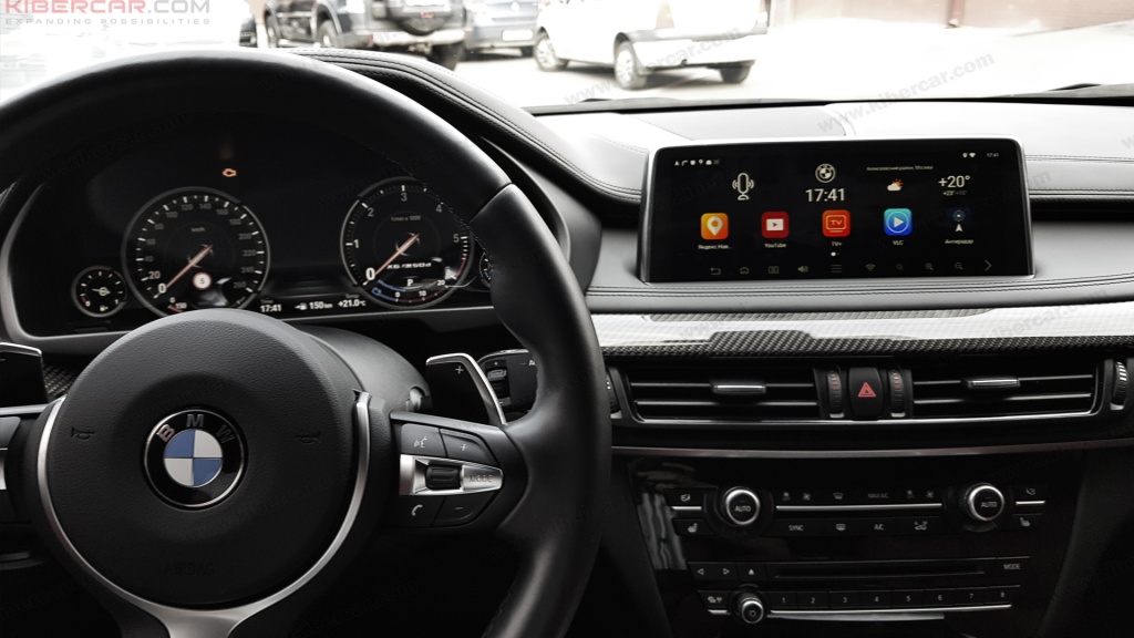 У авто лояльная эргономика – каждый элемент направлен на комфортное вождение. Что, впрочем, не помешало нашему клиенту обзавестись мультимедийной системой на базе Android, которая приятно дополнит фирменную NBT Evo. Да еще и на родном экране, без его замены.