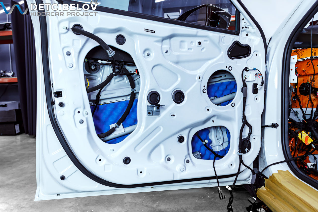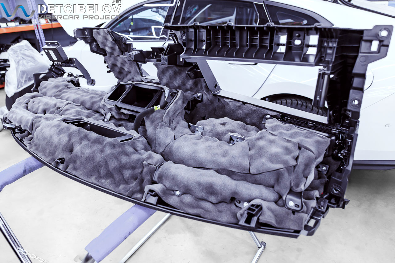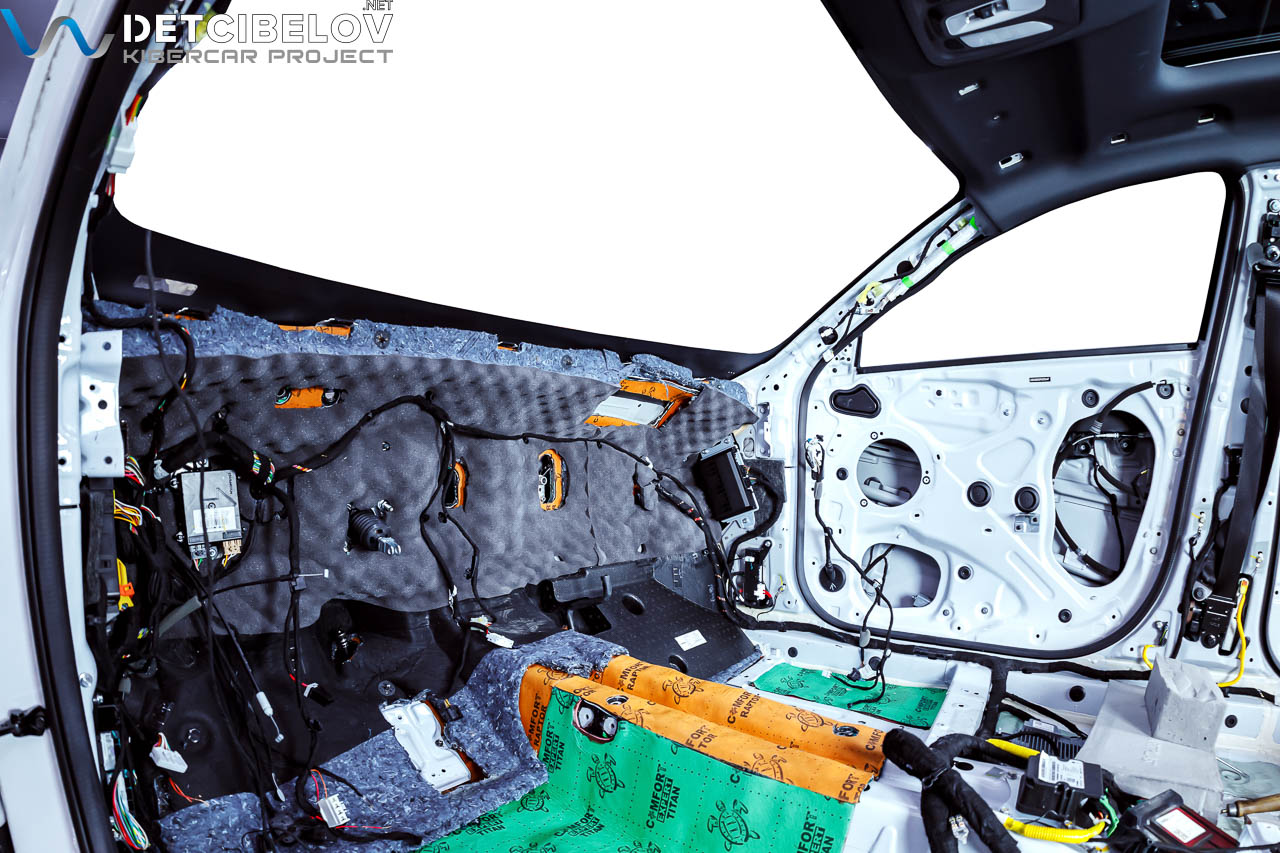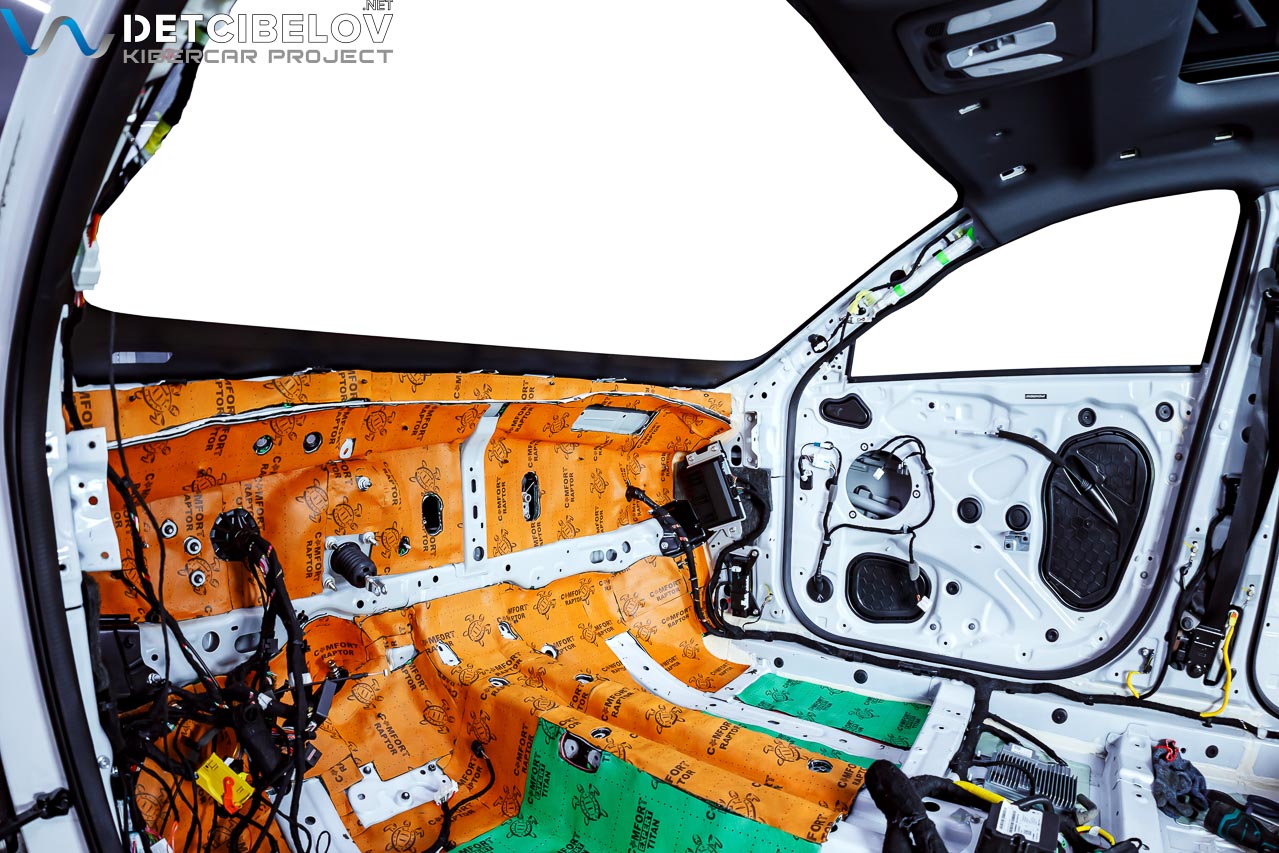 Работа выполнялась поэтапно. У каждого из мастеров, участвовавших в реализации проекта – от 5 лет практики в сфере шумоизоляции премиальных автомобилей. Мы ориентировались на стандарты производителя шумоизоляционных материалов, компании Стандартпласт, а также собственный опыт.