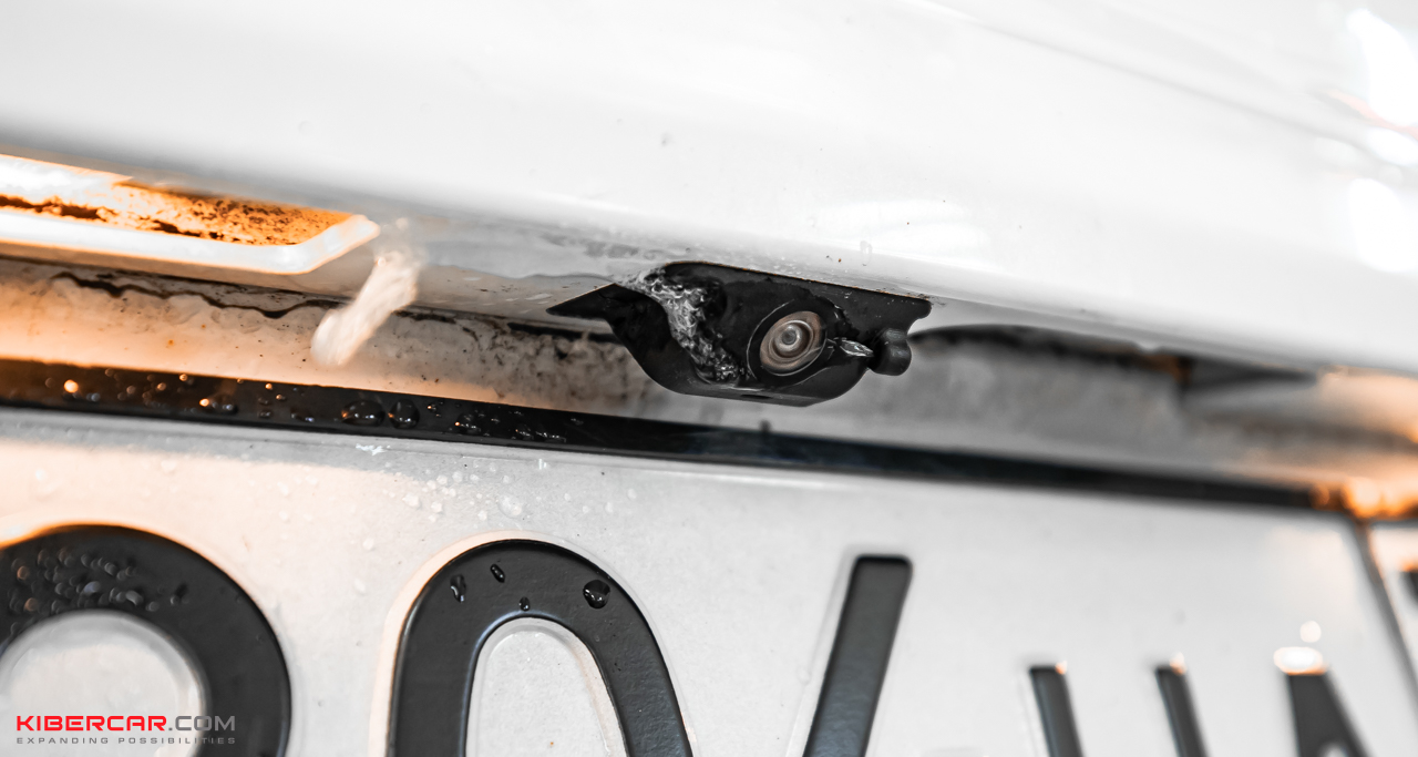 В первую очередь специалисты сняли камеру заднего вида и заменили ее площадку на деталь, изготовленную в нашем установочном центре. От штатной она отличается интегрированной непосредственно в корпус форсункой. Настраивать ее не нужно – деталь спроектирована так, что распыляемая жидкость попадает точно в центр оптики, качественно ее промывая.