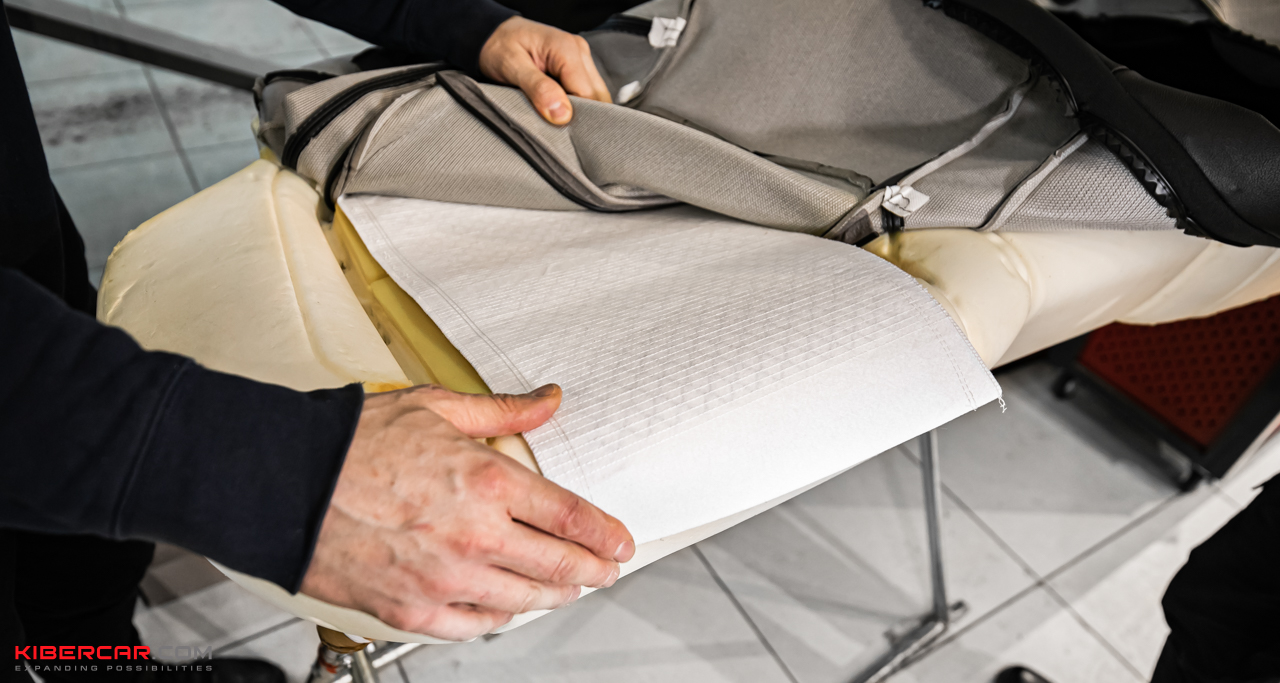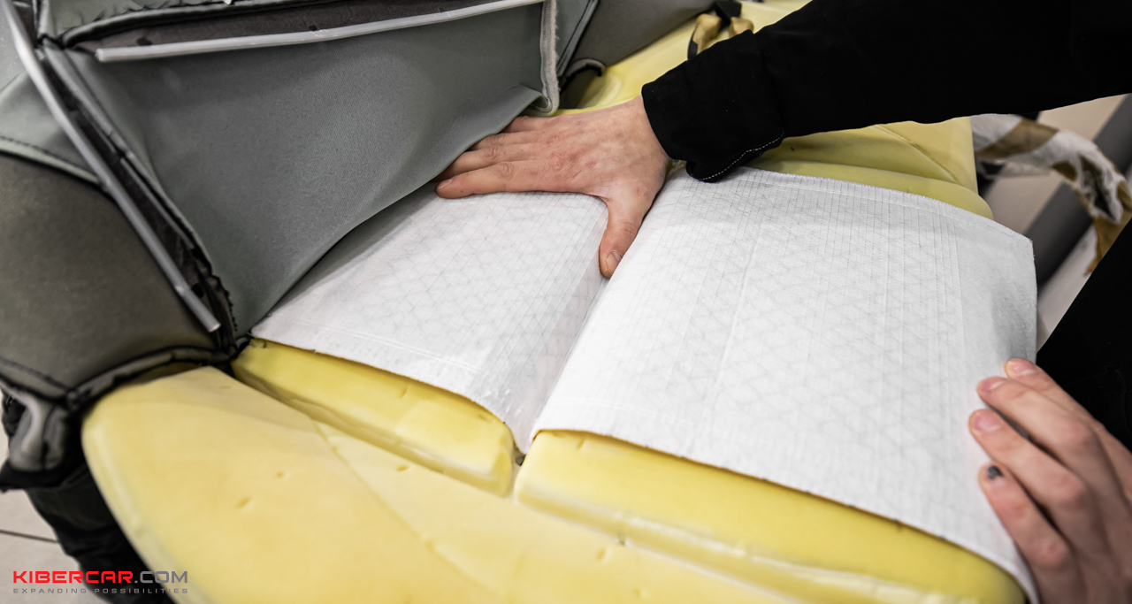 Чтобы провести монтаж, мастера полностью демонтируют задний диван и снимают обивку. Под нее они укладывают тепловые маты из комплекта AONE TERMA, после чего подключают к ним соединительные кабели и выводят их наружу сидений. Сами маты изготовлены из высококачественной углеродной ткани, легко выдерживающей нагрев до критических температур. Еще одно преимущество – возможность «корректировки» размеров материала при помощи подрезки. Маты при доработке не теряют своего функционала.