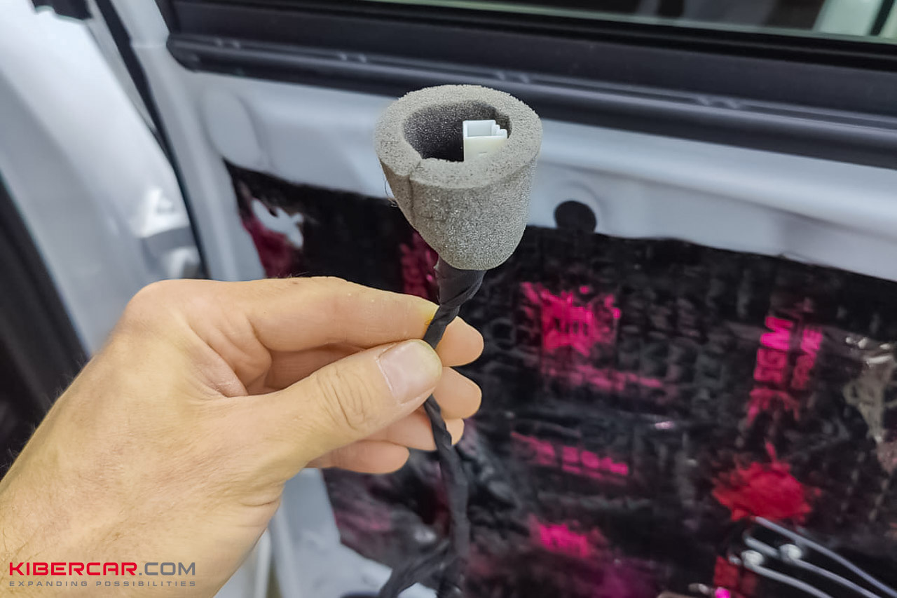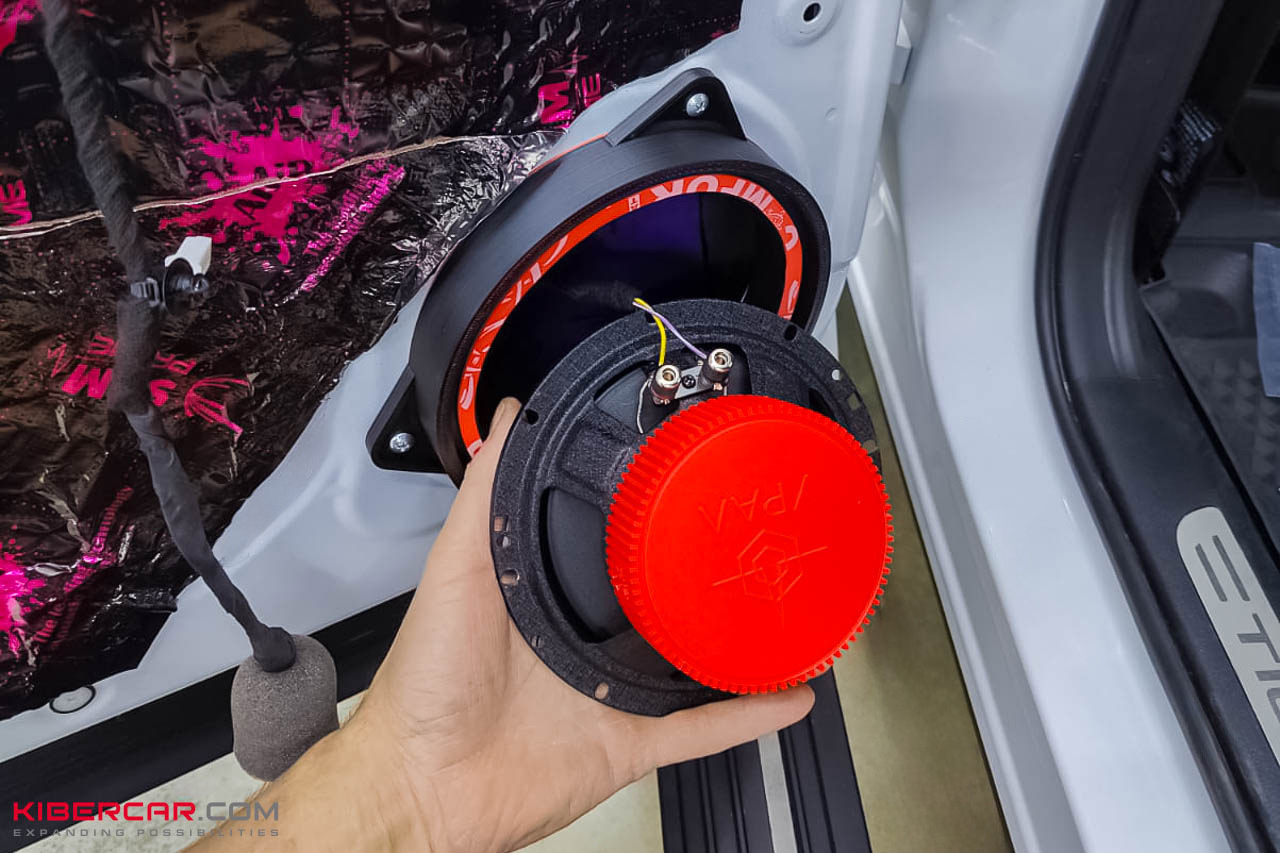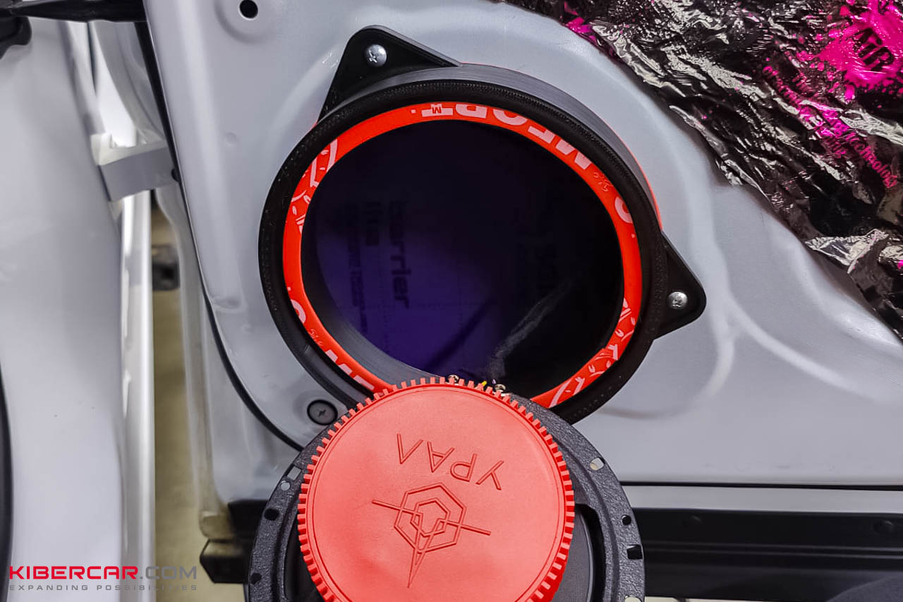 Мы установили и подключили процессорный усилитель, чтобы правильно разложить сигнал на несколько диапазонов, правильно подключили сабвуфер, протянули свою проводку во все двери автомобиля. На 3D принтере изготовили специальные проставки для динамиков, чтобы обеспечить плотное прилегание. В задних дверях заменили оба твиттера – они были разными, из-за чего звук получался несбалансированным.