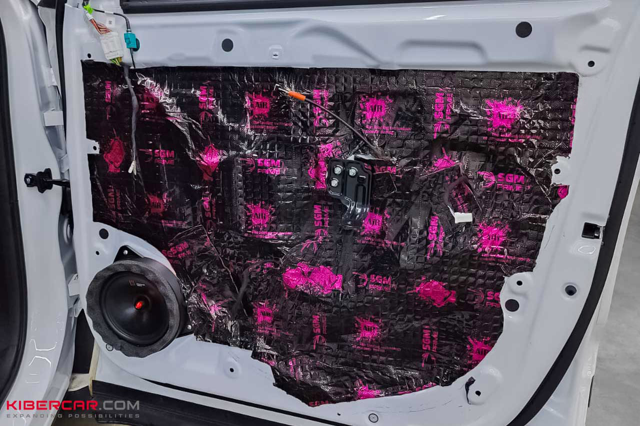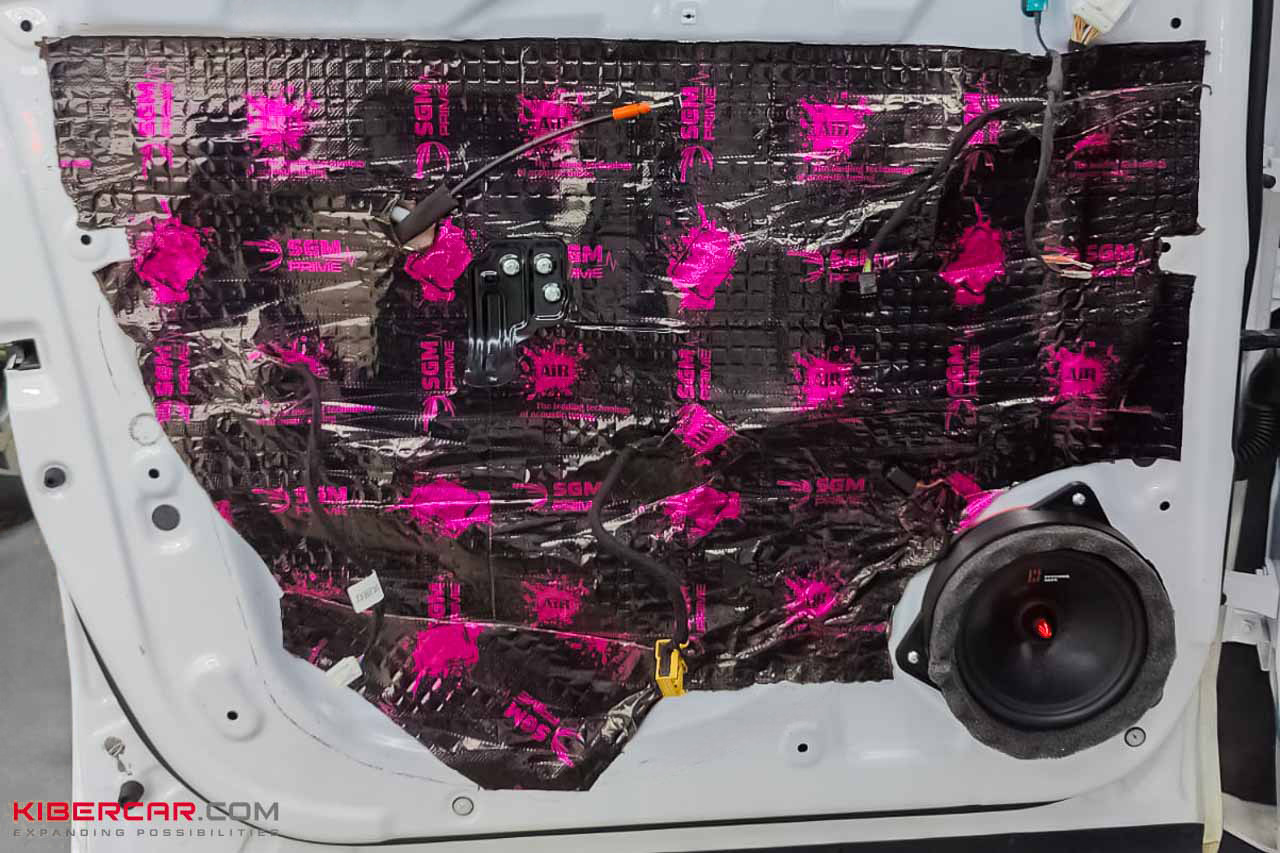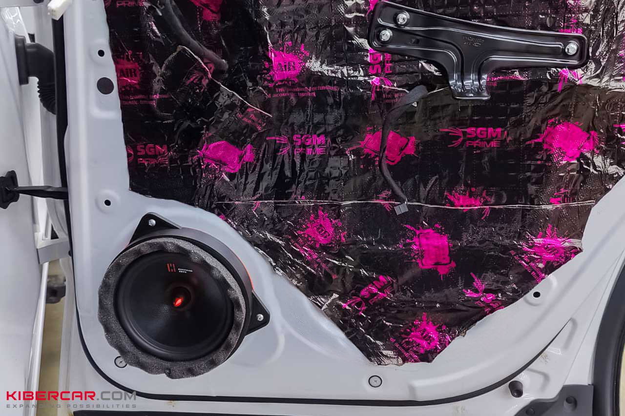 Мы установили и подключили процессорный усилитель, чтобы правильно разложить сигнал на несколько диапазонов, правильно подключили сабвуфер, протянули свою проводку во все двери автомобиля. На 3D принтере изготовили специальные проставки для динамиков, чтобы обеспечить плотное прилегание. В задних дверях заменили оба твиттера – они были разными, из-за чего звук получался несбалансированным.