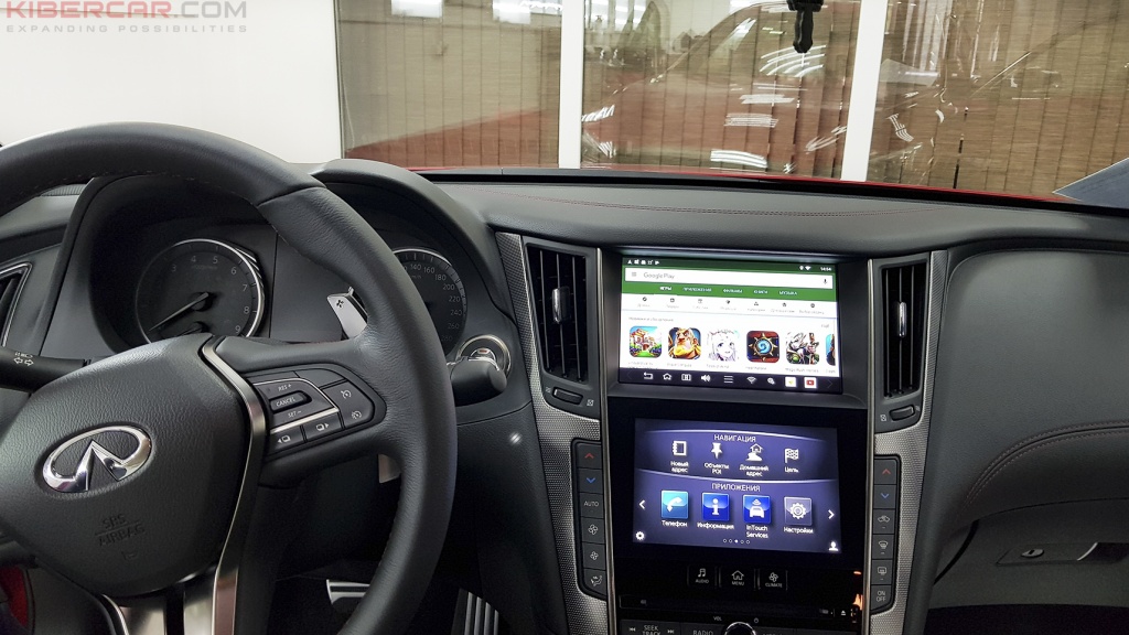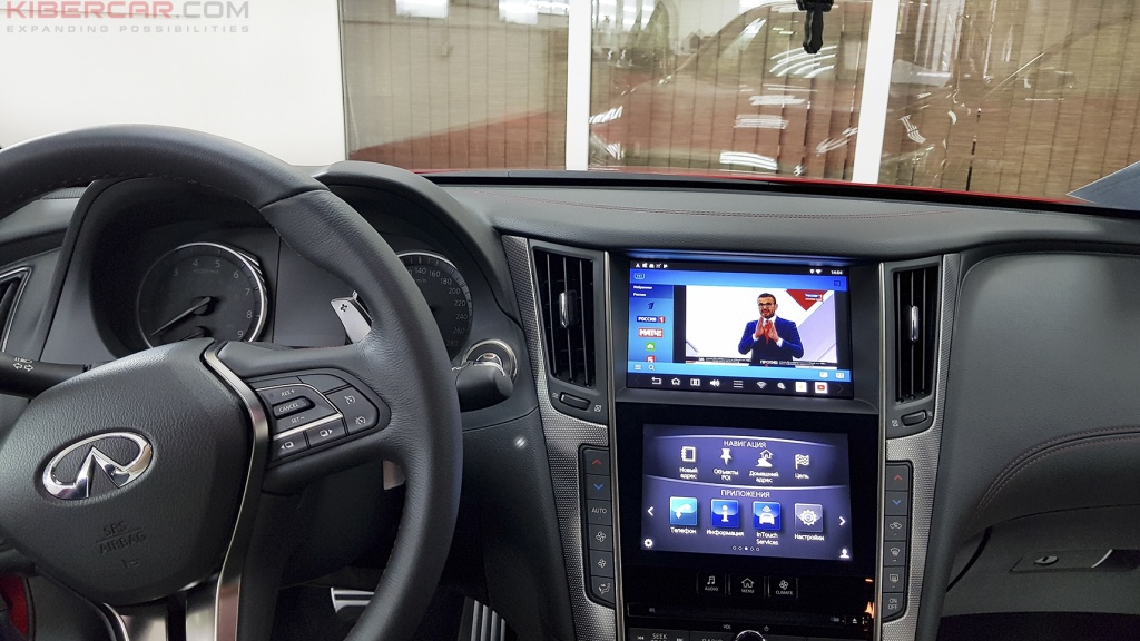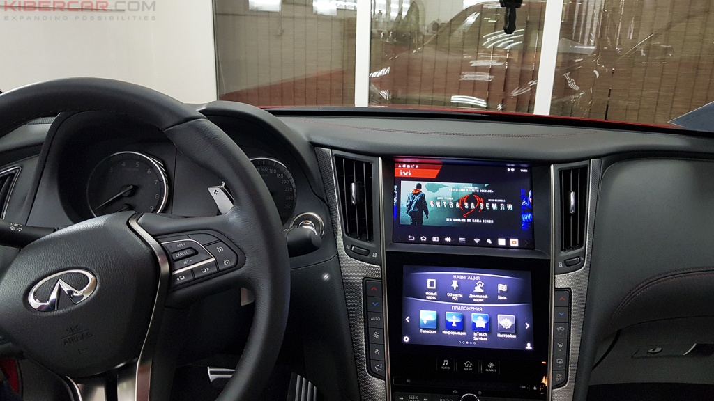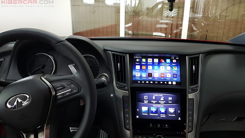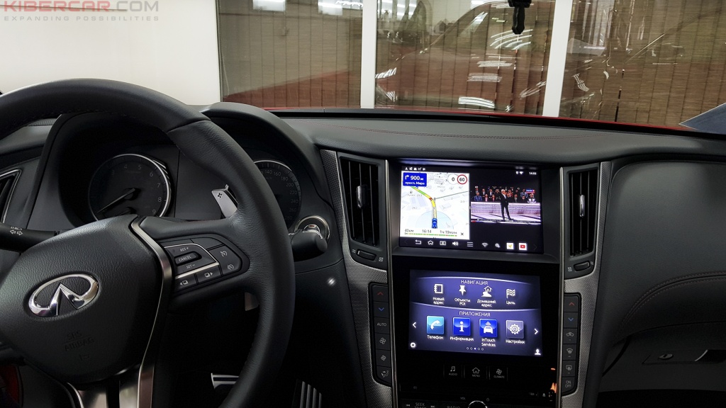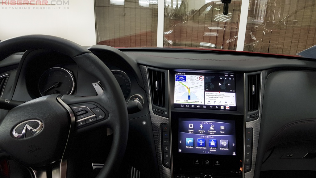 Как уже неоднократно упоминалось в наших записях, штатное меню осталось на месте, Android отображается поверх него, а переключиться обратно можно при помощи родной кнопки Infiniti Q50.
