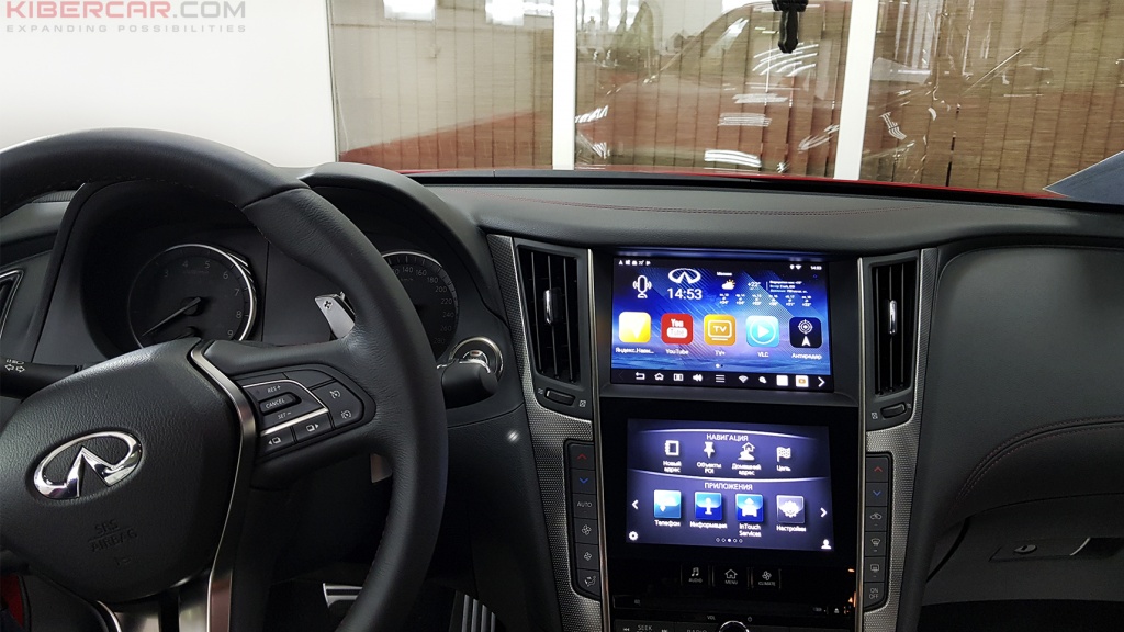 Редкость, конечно, но у машин бывает отсутствует взаимосвязь между рулевым ободом и колесами. Это нововведение – часть общей электрификации машин, как, например, электронная коробка передач или педали. Как в свое время человечество отказалось от прослушивания музыки на физических носителях в угоду сервисам, так и водитель данной Ку50 отказался от монополии мультимедиа в своем авто. Что он сделал? Попросил Киберкар установить ему AirTouch Performance 8 в дополнение к штатной системе.