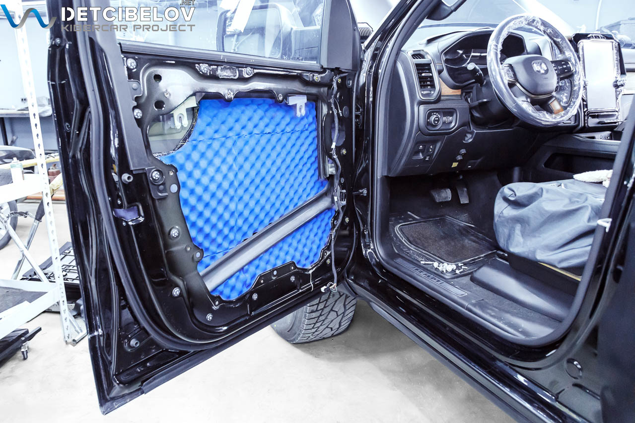 Шумоизоляция Dodge RAM заняла у нашей команды порядка 6 дней. Результаты вы видите в нашем фотоотчете: мы постарались запечатлеть каждый этап работы. Мы обработали основные источники проникновения шума: двери, потолок, стойки, пол, перегородку моторного отсека и подкапотное жабо, внутреннюю и наружную часть колесных арок. В автомобиле стало ощутимо тише, а внешний вид остался прежним.