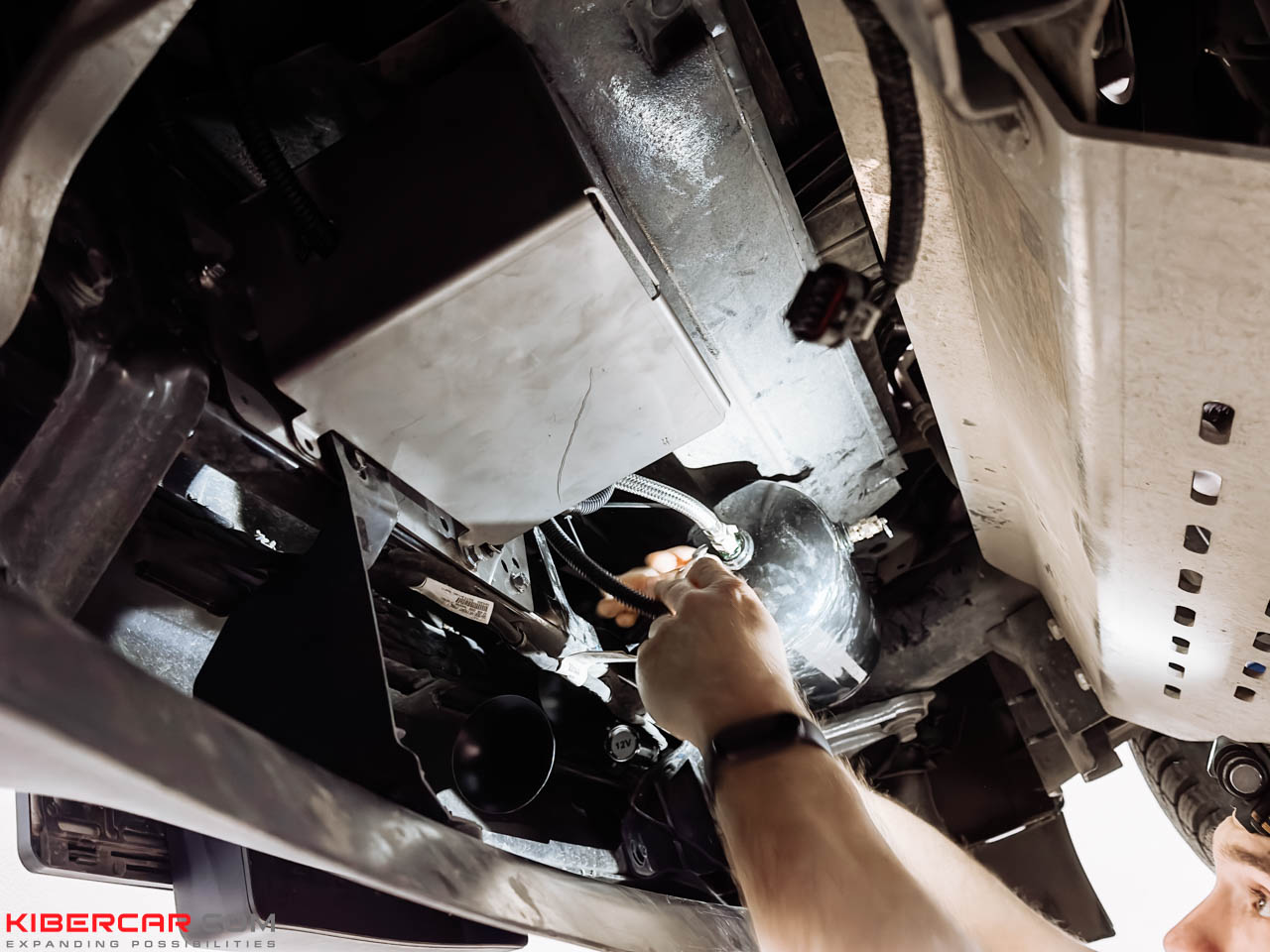Мы установили ресивер и компрессор за бампером снизу. Для этого не потребовалось вносить серьезных изменений в конструкцию авто, поэтому такое дооснащение не влияет на официальную гарантию.