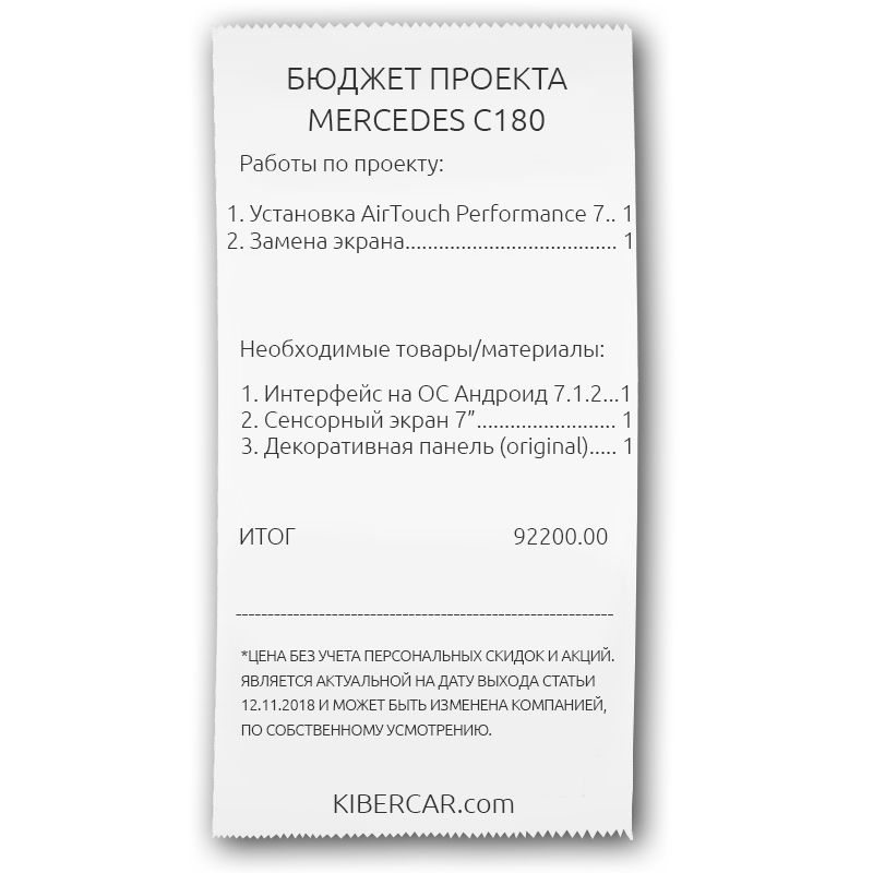 Итог: Владелец нашего Mercedes C180 сможет по достоинству оценить весь спектр новых возможностей, которые стали осуществимы благодаря компании «Киберкар».
