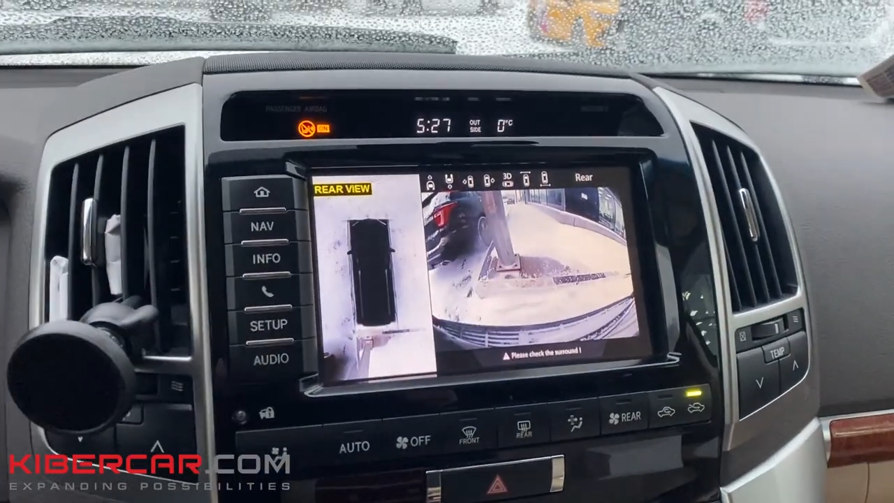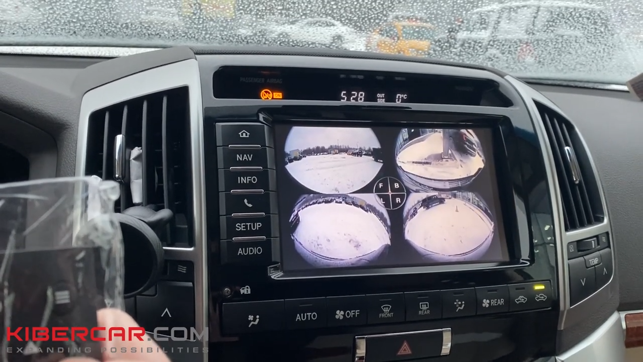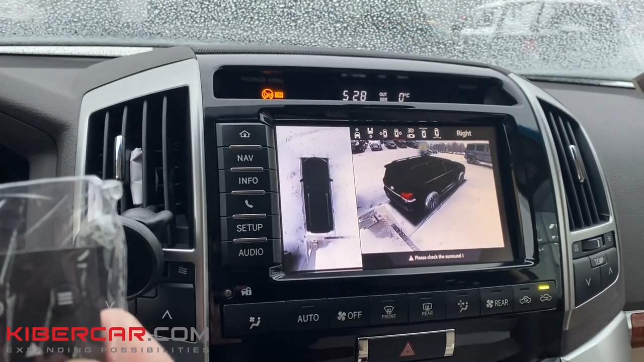 Кажется, что в салоне Toyota Land Cruiser 200 ничего не изменилось. Действительно, мы не меняли штатное головное устройство, но значительно расширили его функционал. При включении заднего хода автоматически появляется зеркальная картинка с задней камеры и вид авто сверху. Также можно переключиться на любую из камер или осмотреться вокруг в 3D-режиме, используя пульт управления.