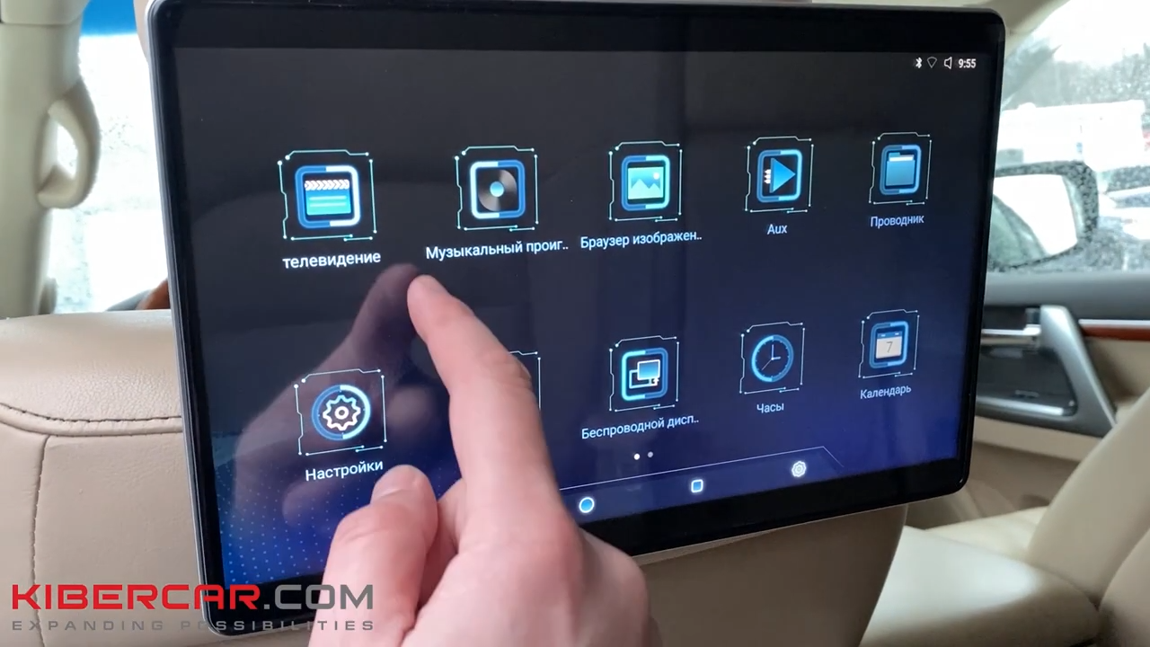 Потрудились и над салоном. Установили двухканальный видеорегистратор. В подголовники передних сидений монтировали дополнительные мониторы на базе Андроид. Они надежно крепятся на металлические кронштейны и подходят для всех моделей авто. Провода зашиты в сиденья и абсолютно не видны. Гаджеты легко снять и убрать, а при необходимости – установить на место. Включение производится нажатием кнопки, и у пассажиров появляется доступ к полному меню планшета или смартфона на базе Андроид. Консоль оснащена сенсорным управлением, предусмотрены входы под разные типы внешних накопителей, что позволяет воспроизвести любую нужную информацию.