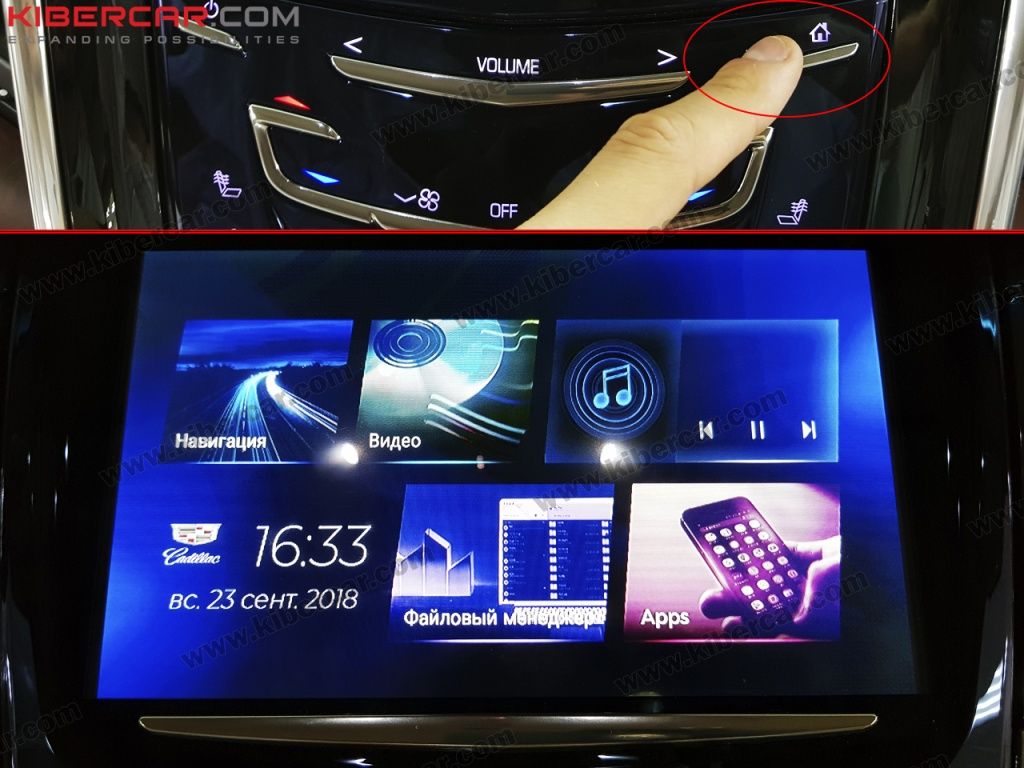 Переключение между штатной системой и новой происходит путем нажатия и удержания (1.5-2сек) штатной кнопки «Home». Через несколько секунд на экране показывается другое меню.