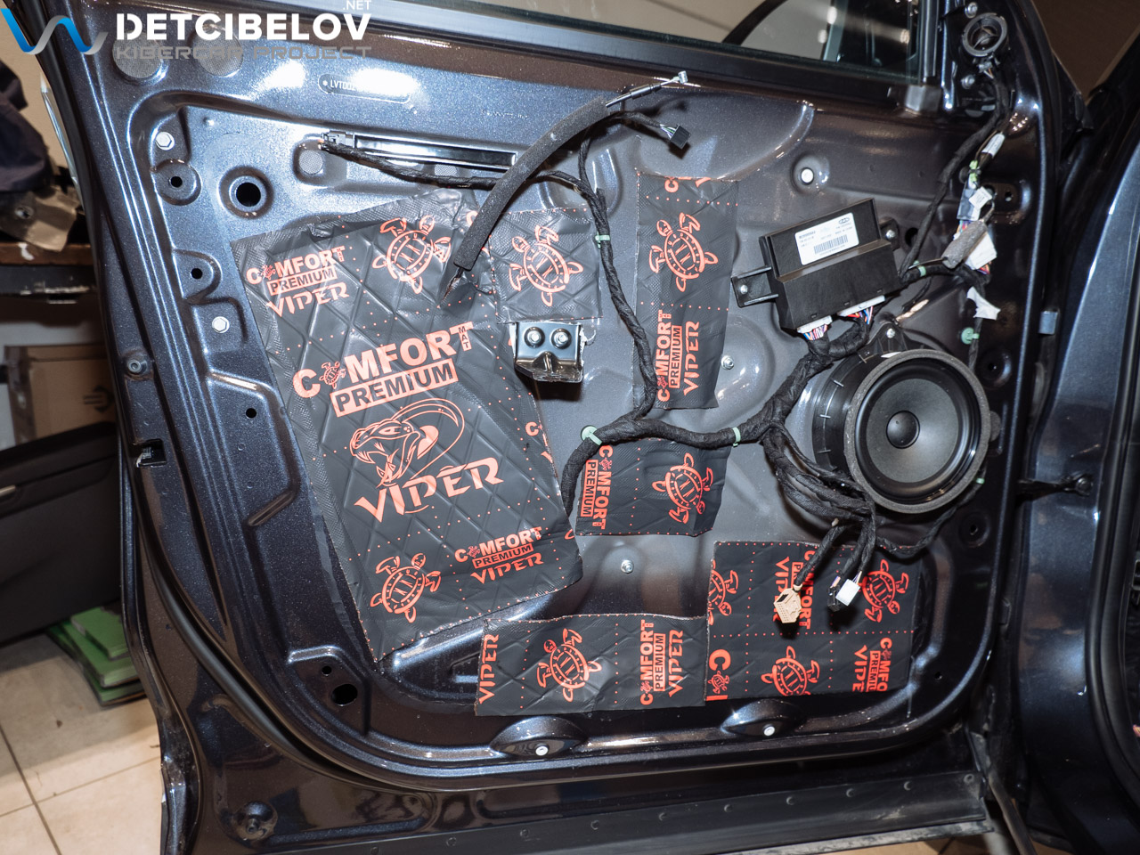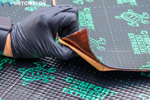 Для того чтобы добиться полного акустического комфорта, мы использовали шумоизоляционные материалы компании Comfort Mat и разработали технологическую карту их нанесения с учетом особенностей автомобиля. В работы мы использовали следующие материалы: