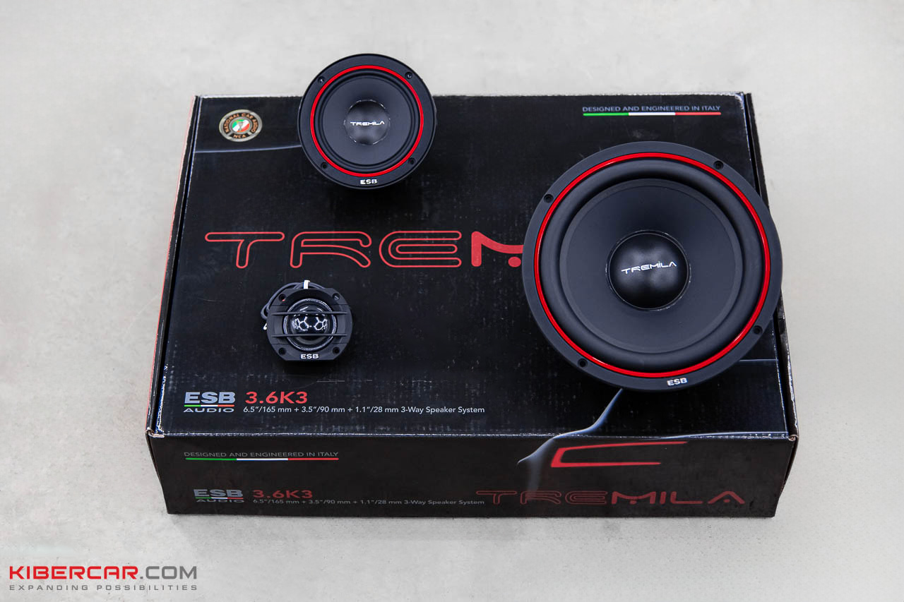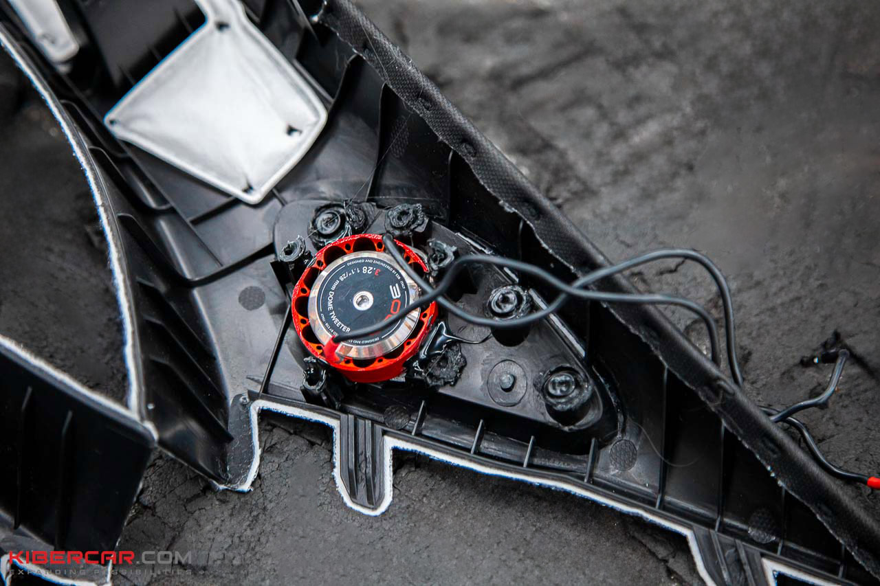 Но и этими изменениями мы не ограничились. Также заменили фронтальную трехполосную акустику, мидбасы, среднечастотные и высокочастотные динамики на итальянскую акустику ESB Audio Tremila. Все компоненты подключили поканально к процессорному усилителю. Для мидбасов дополнительного изготовили проставочные кольца, чтобы они фиксировались максимально плотно, и сделали полную шумоизоляцию.