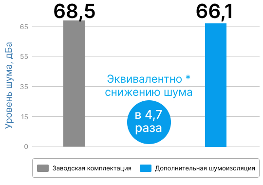 Исчезло ощущение «пустой коробки», пропал навязчивый дорожный шум, при этом мы сохранили заводской вид интерьера и полную функциональность всех систем. Если тоже планируете провести шумоизоляцию автомобиля, напишите нам, рассчитаем стоимость!