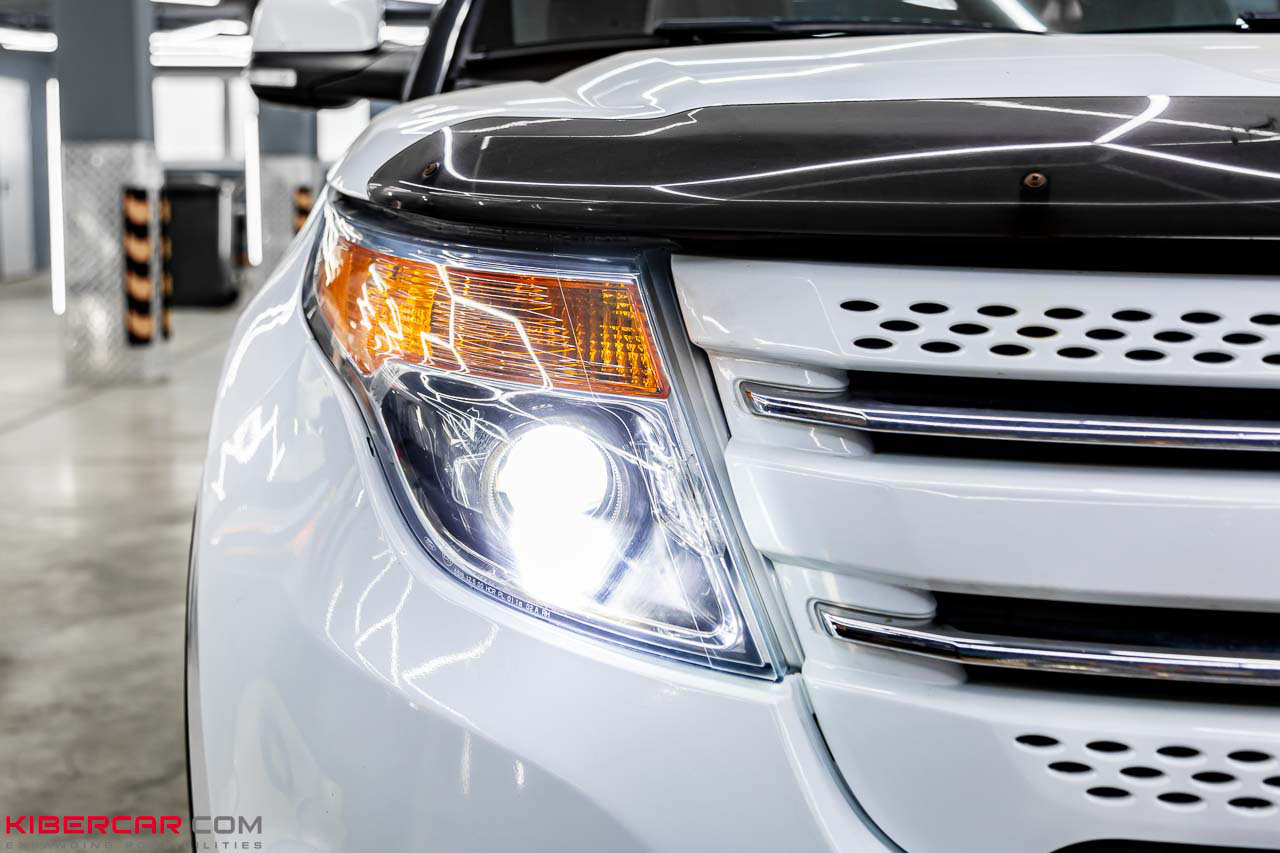 Задача: поднять уровень безопасности при движении в затрудненных условиях видимости или ночью, улучшить свет фар и характеристики оптики Ford Explorer.